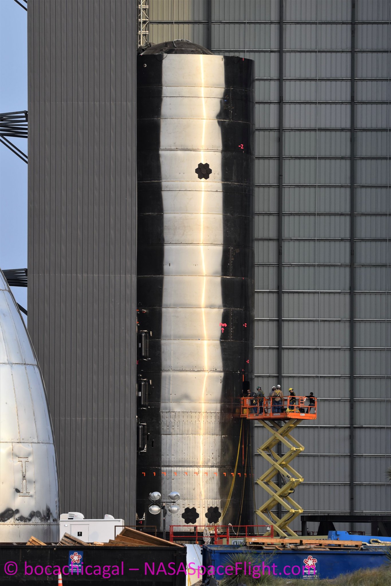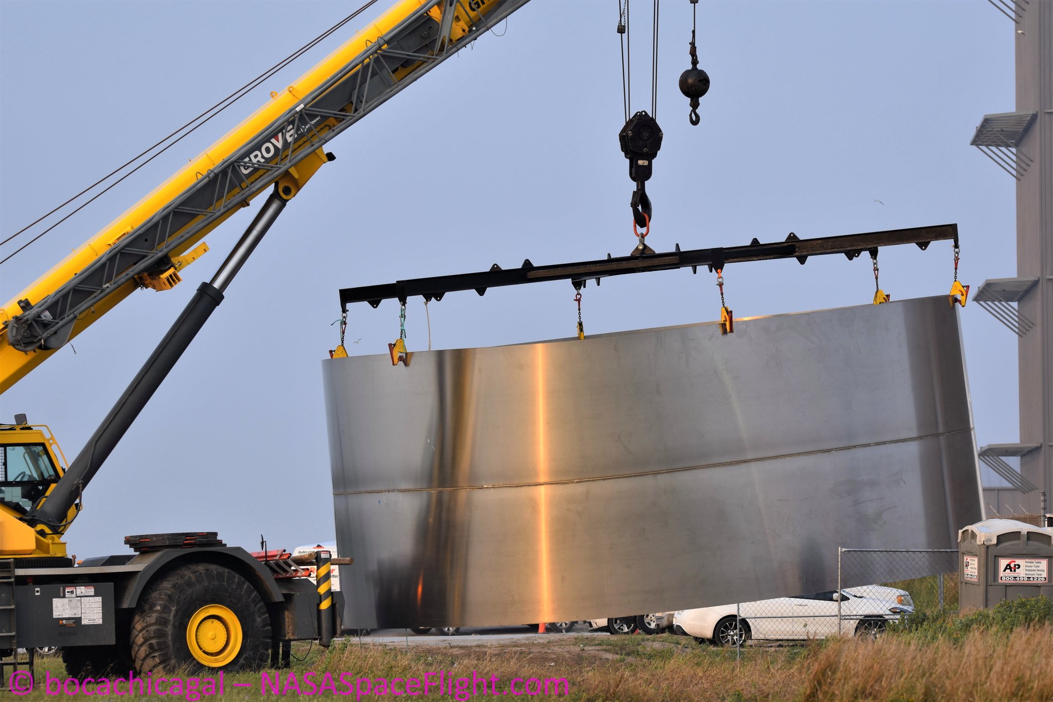 На строительную площадку доставлено несколько верхних купольных резервуаров для следующих прототипов, и был замечен новый участок, который будет принадлежать SN5.