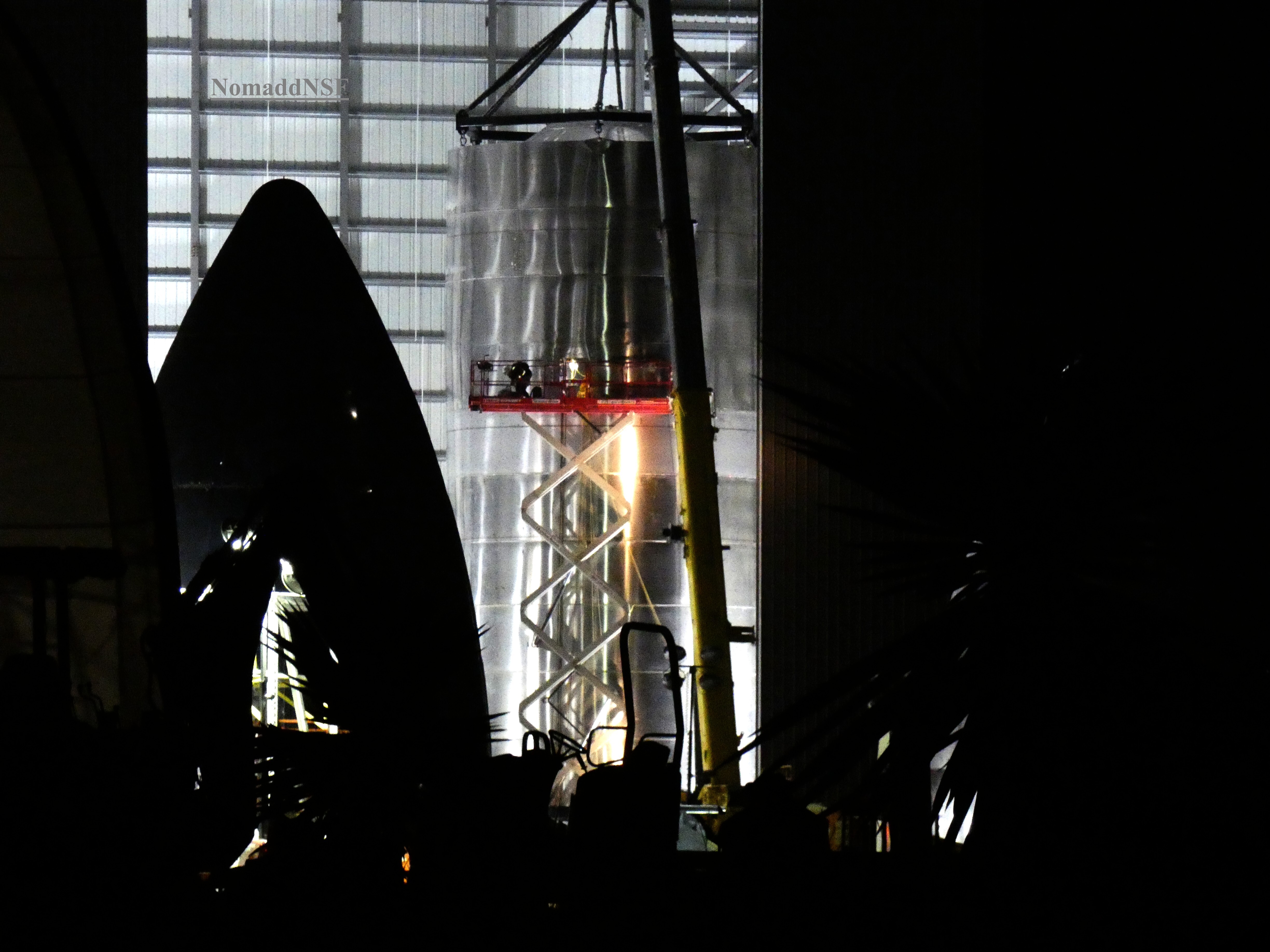 Тем временем, продолжается сборка SN5. Секция с верхним днищем установлена на свое место: