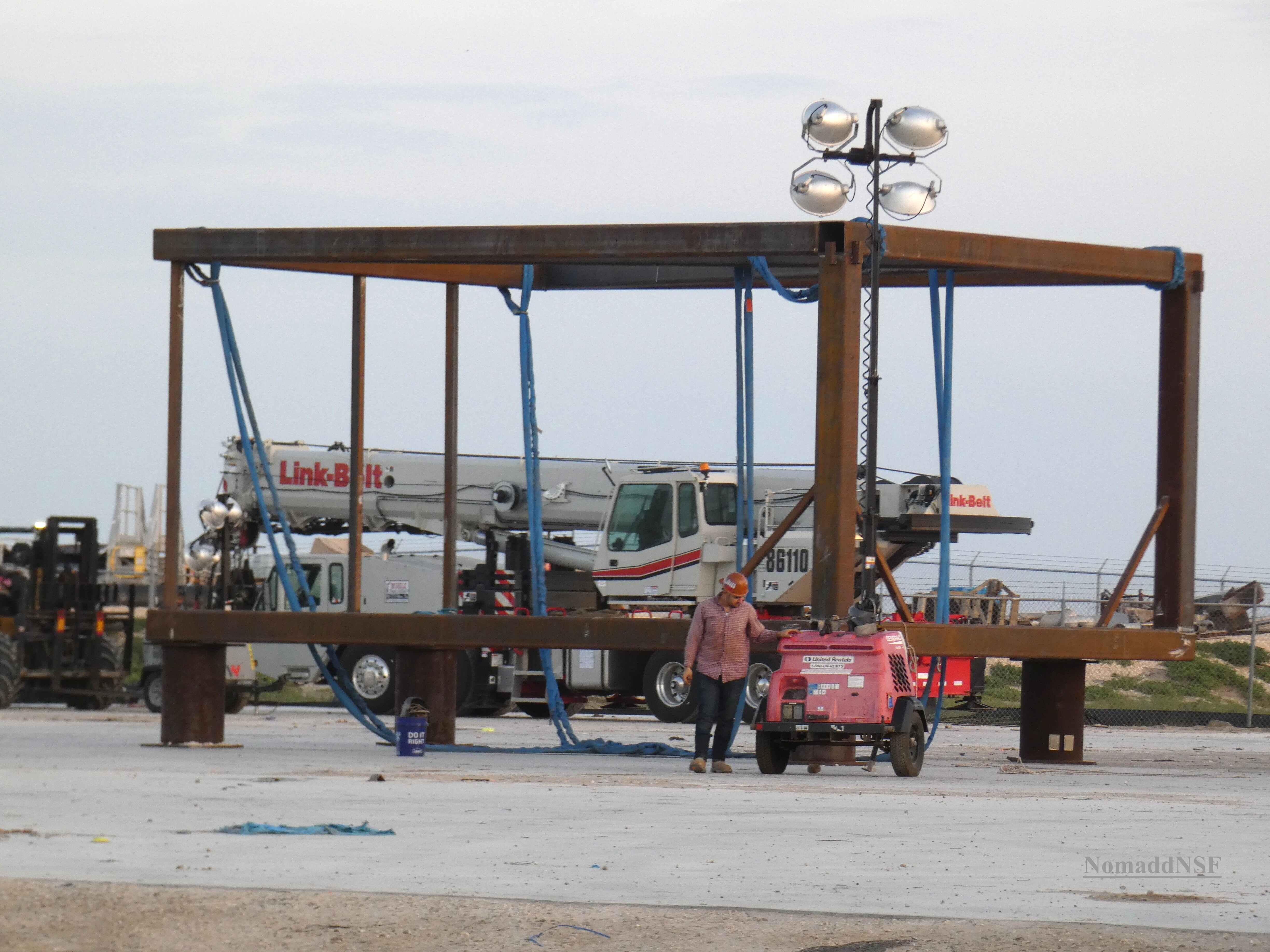 Кроме запланированного на сегодня прожига (окно с 09:00 до 21:00 местного времени), в расписание добавлено 16 мая (окно с 06:00 до 14:00). Возможно, это уже под прыжок. Они освободили посадочную площадку, правда затем зачем-то поставили на ней вот эту штуку: