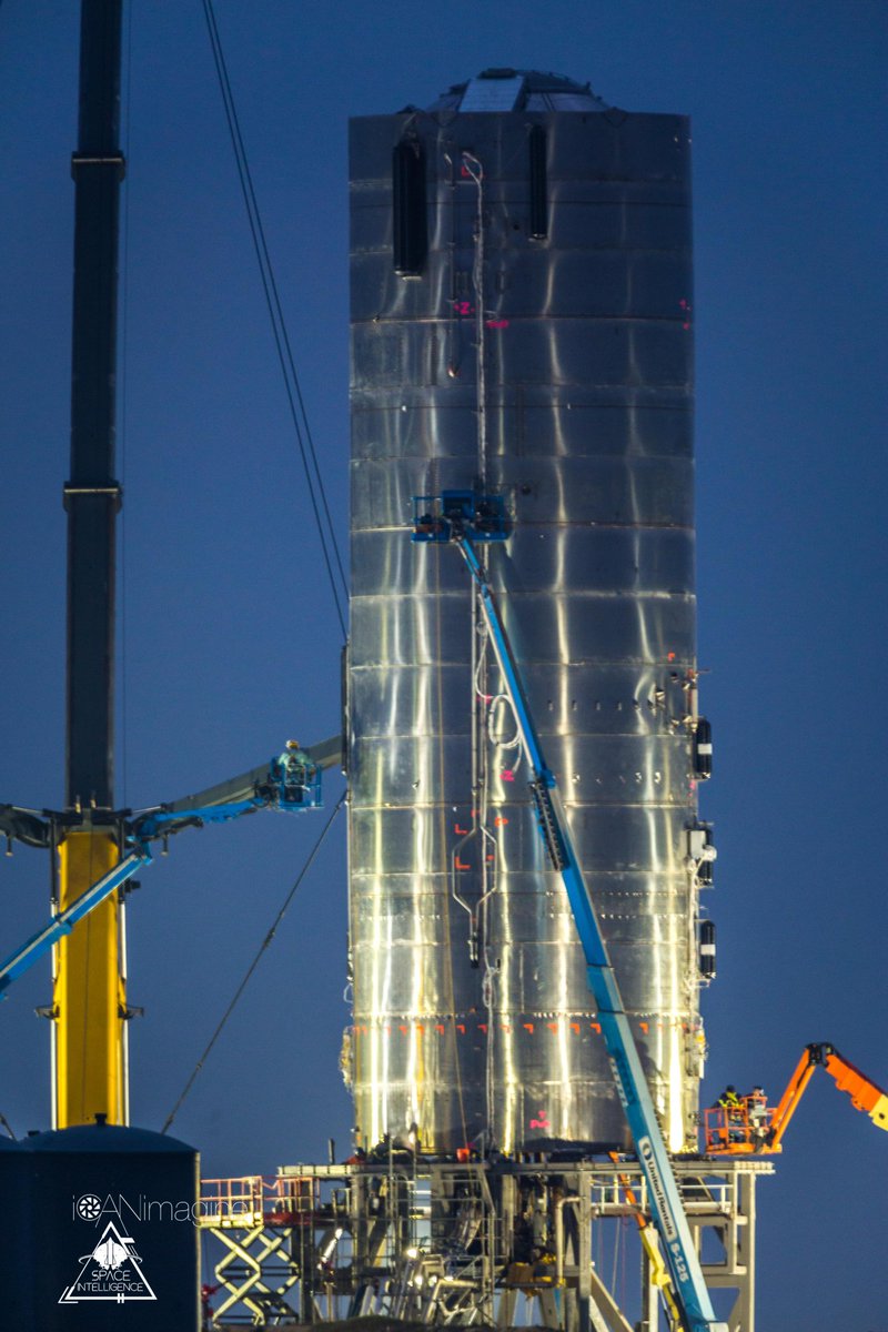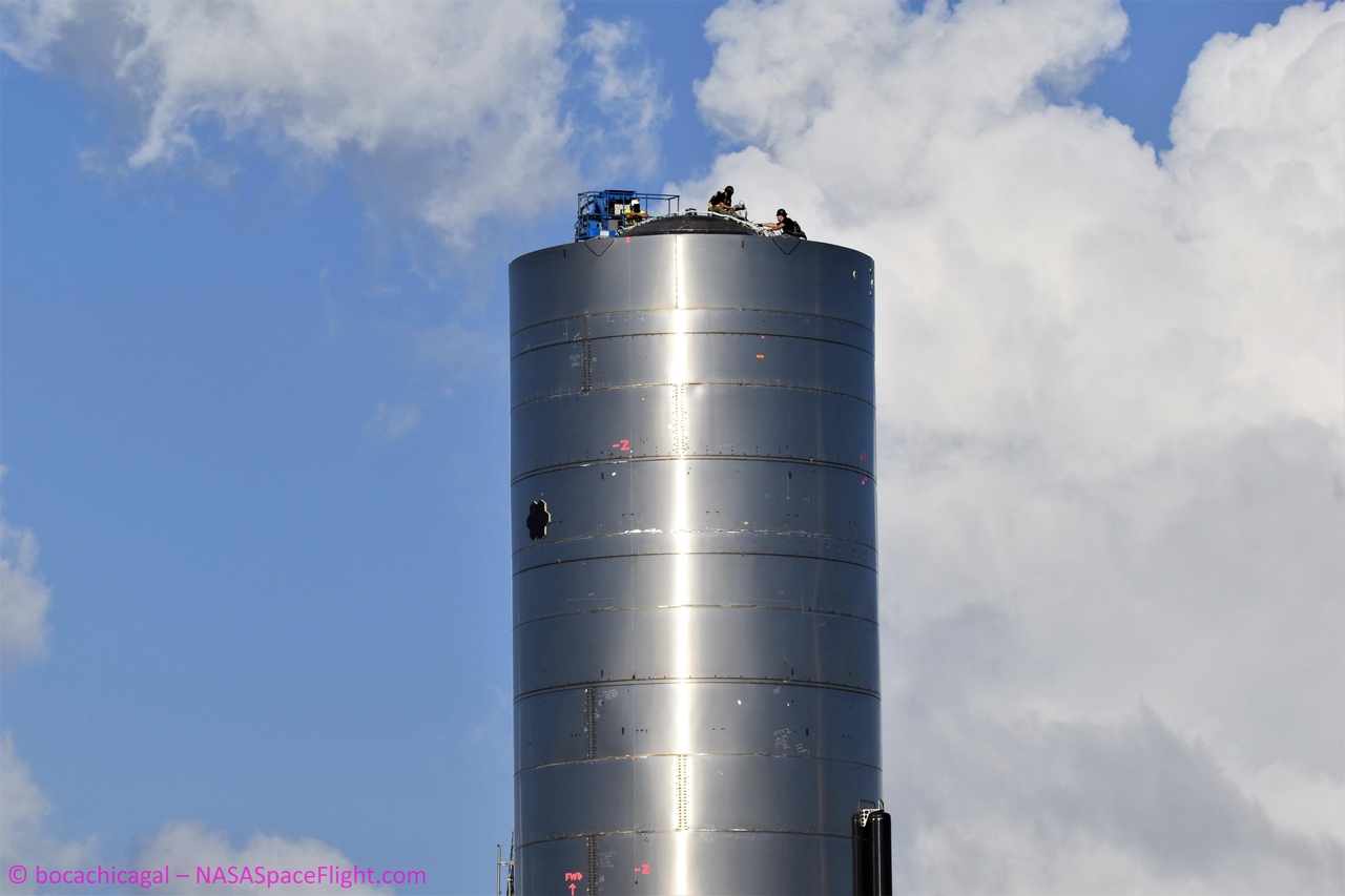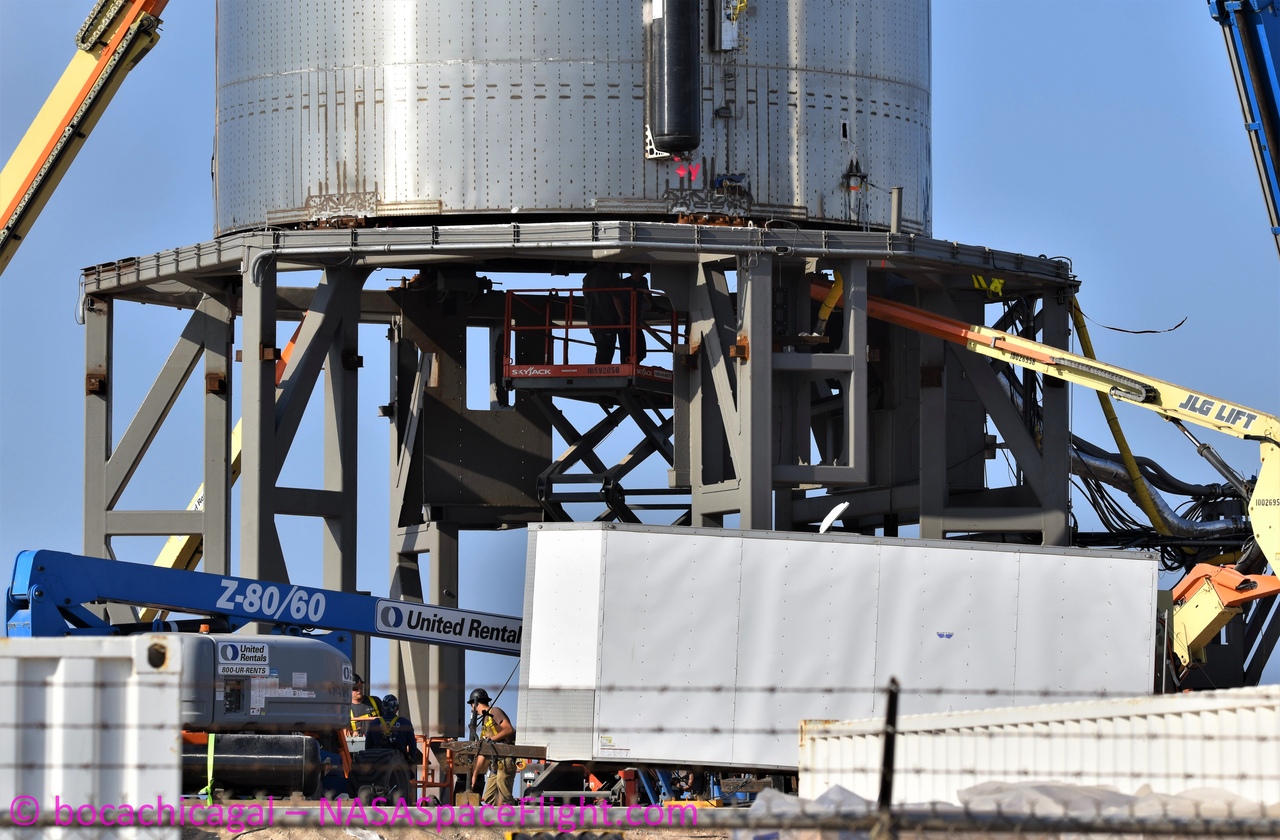 На стартовой площадке велись активные подготовительные работы с прототипом: был установлен двигатель Raptor, а также служебные системы.