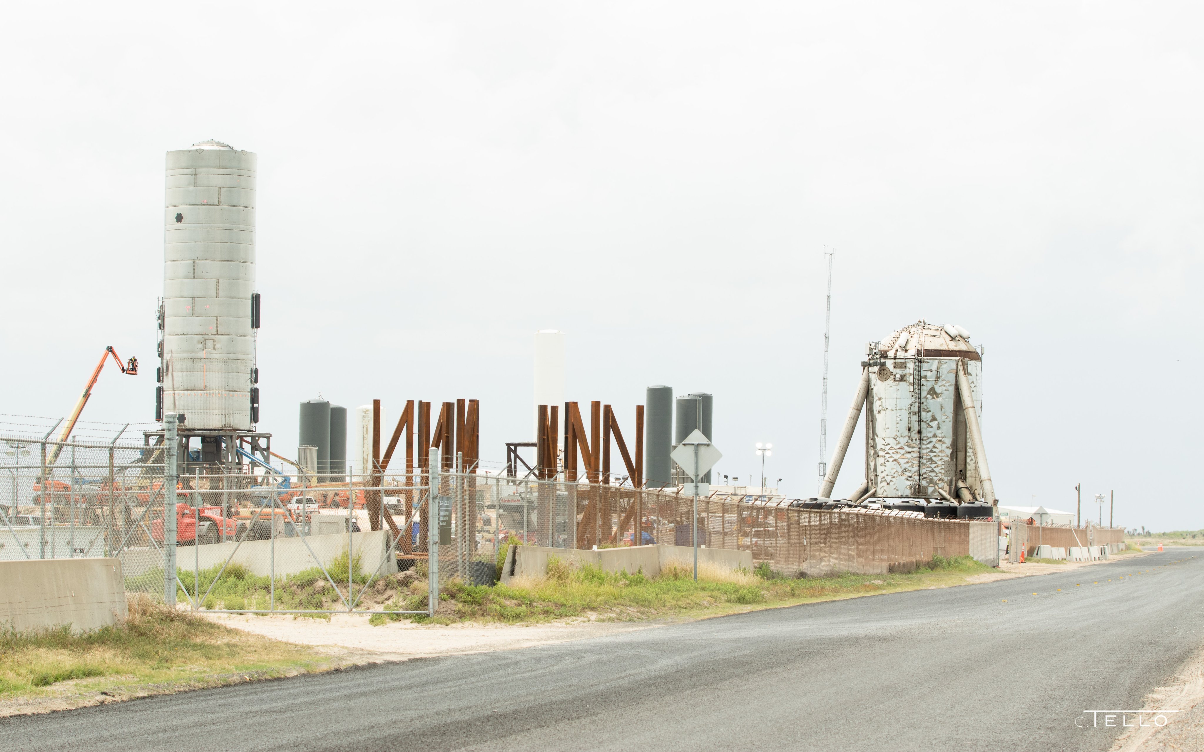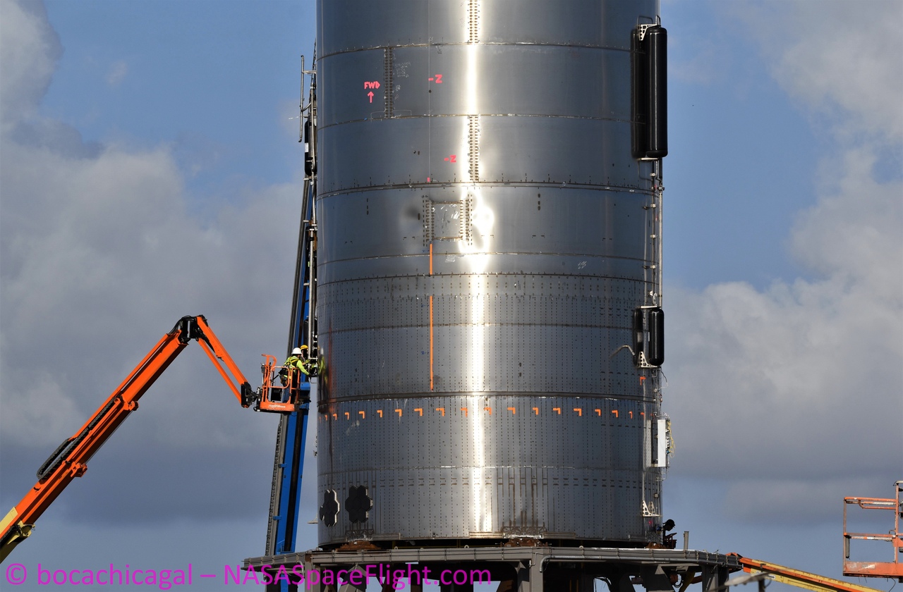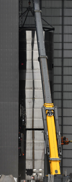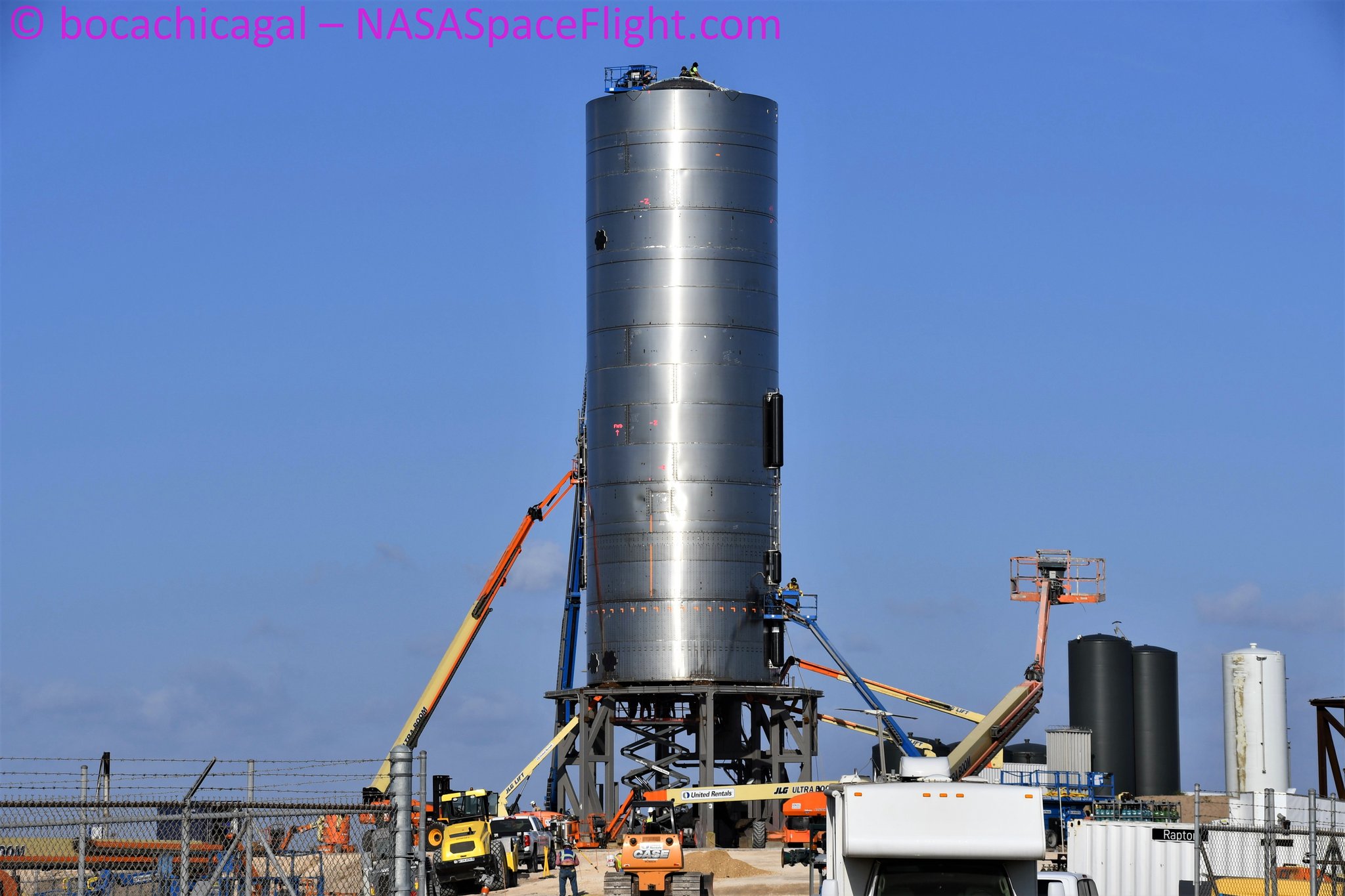 На стартовой площадке велись активные подготовительные работы с прототипом: был установлен двигатель Raptor, а также служебные системы.