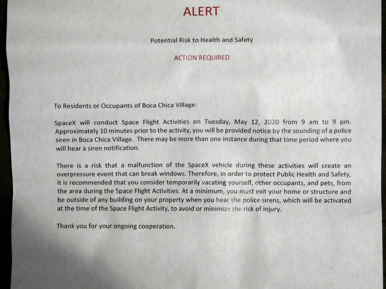 Была выпущена новая бумага о закрытии воздушного пространства, напомним, что сегодня с прототипом ожидается проведение статического огневого испытания :f09f94a5: Также был выпущен бюллетень безопасности о проведении испытаний на площадке SpaceX в Бока-Чика.