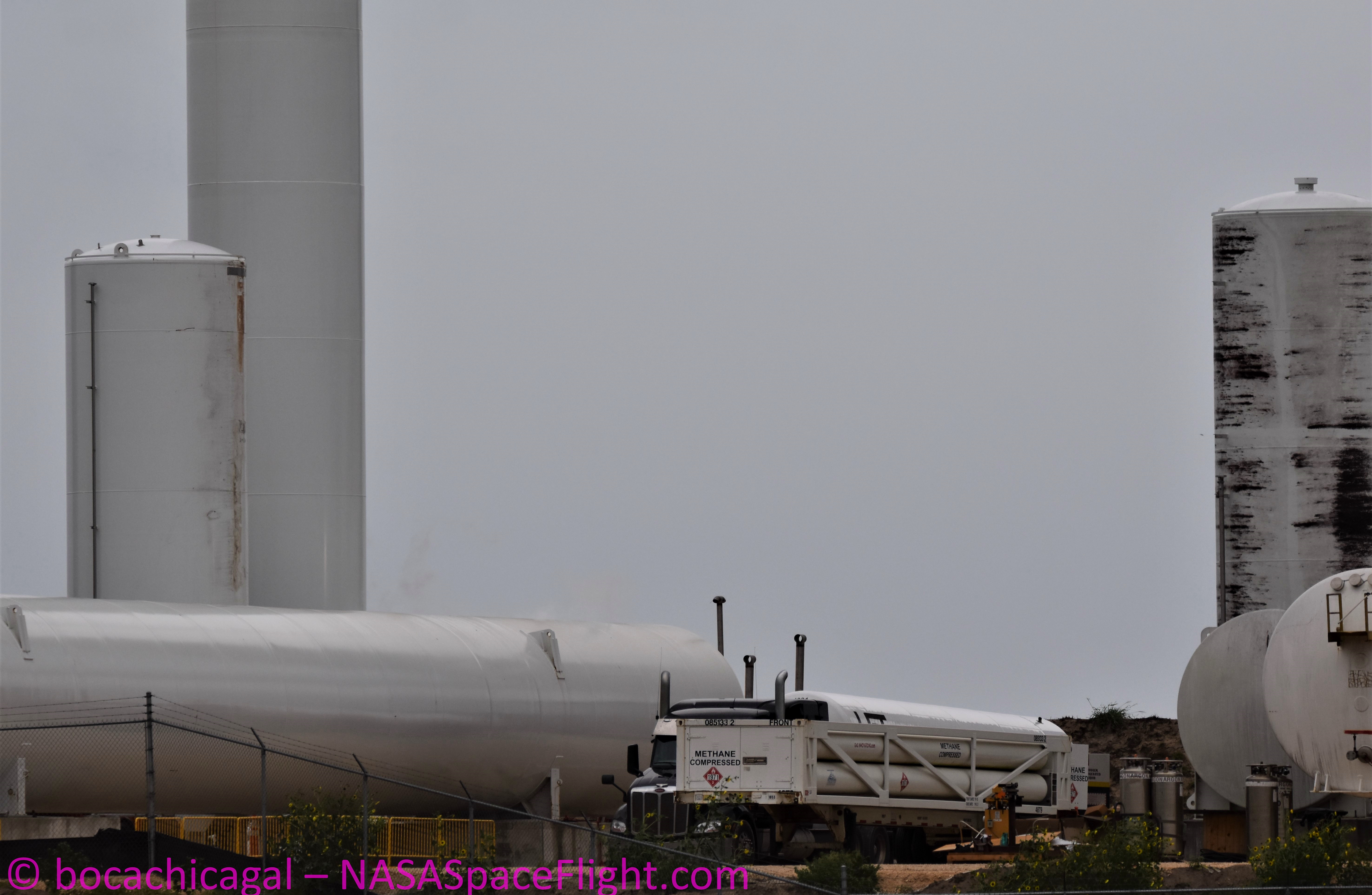 Да, с кислородом тоже непонятка. Ведь для сброса газов наддува есть хорошие большие клапаны в верхней части обоих баков. Сразу же после прожига они открылись, и через них пошел активный сброс. Что за струя кислорода бьет из левого бока внизу до момента запуска двигателя, непонятно. То же самое с истечением метана справа внизу через трубку, которая оторвалась. Сомневаюсь, что там выходят газы наддува. Моя версия - компоненты топлива и окислителя просачиваются через двигатель еще до его запуска и попадают в те самые кольцевые bleed-трубки вокруг нижнего днища, а затем выводятся наружу по бокам в нижней части корпуса.