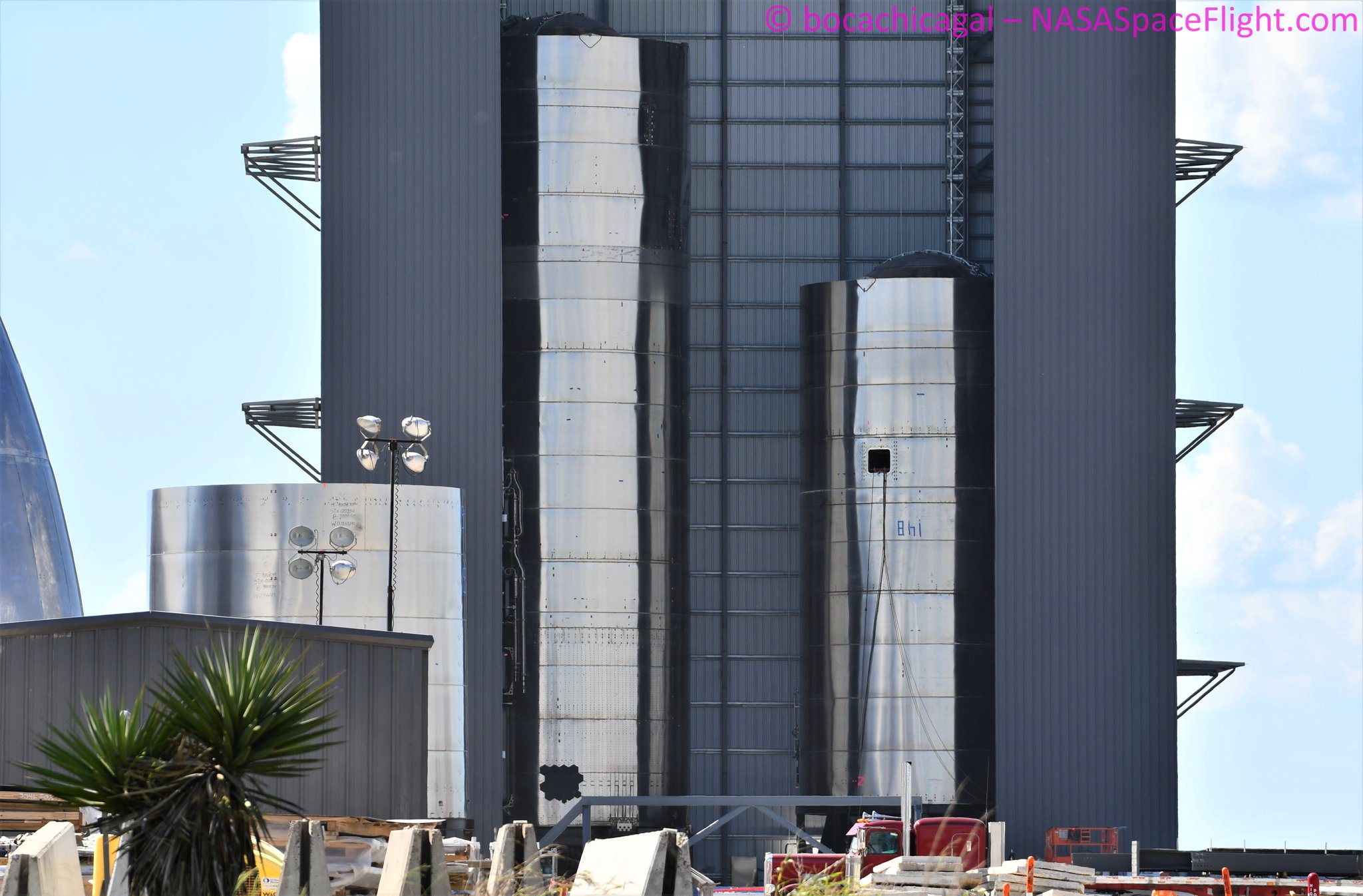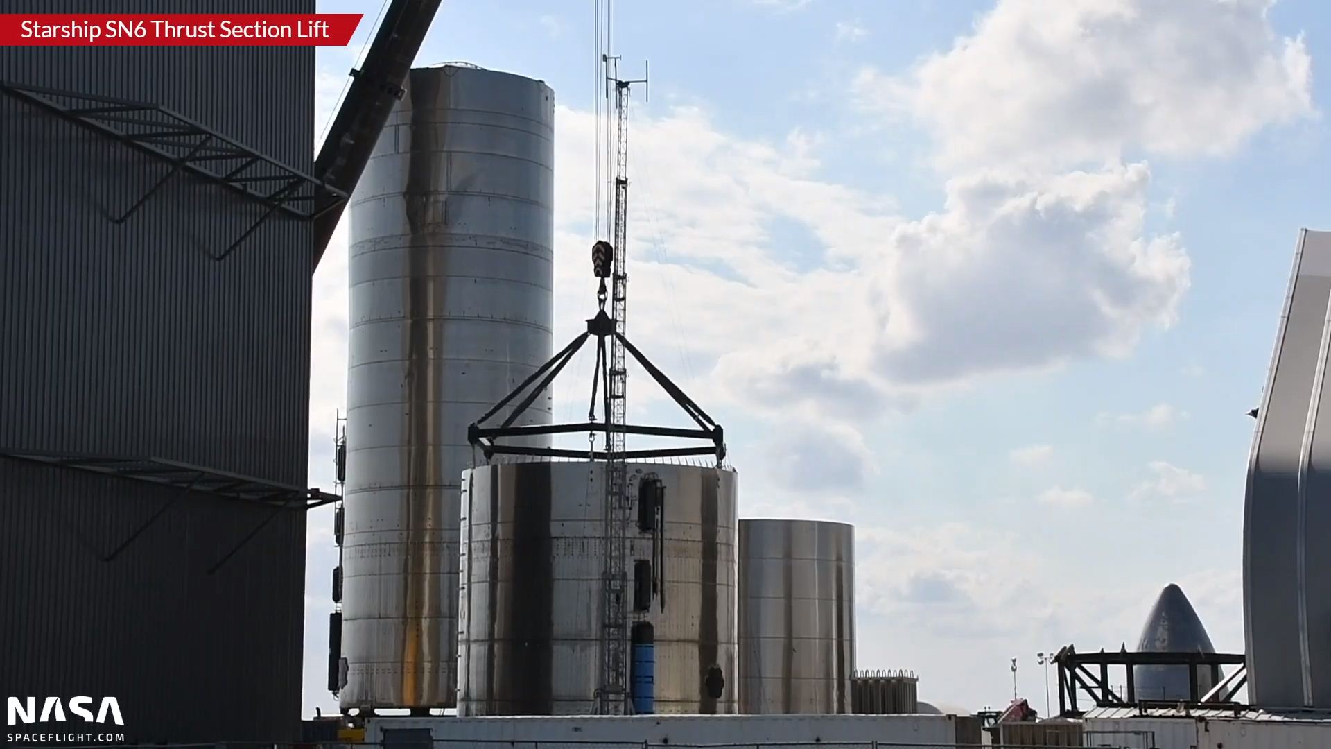 Между тем, SN5 терпеливо ожидает своего поворота рядом с SN6, чья часть двигателя находится слева от HighBay.