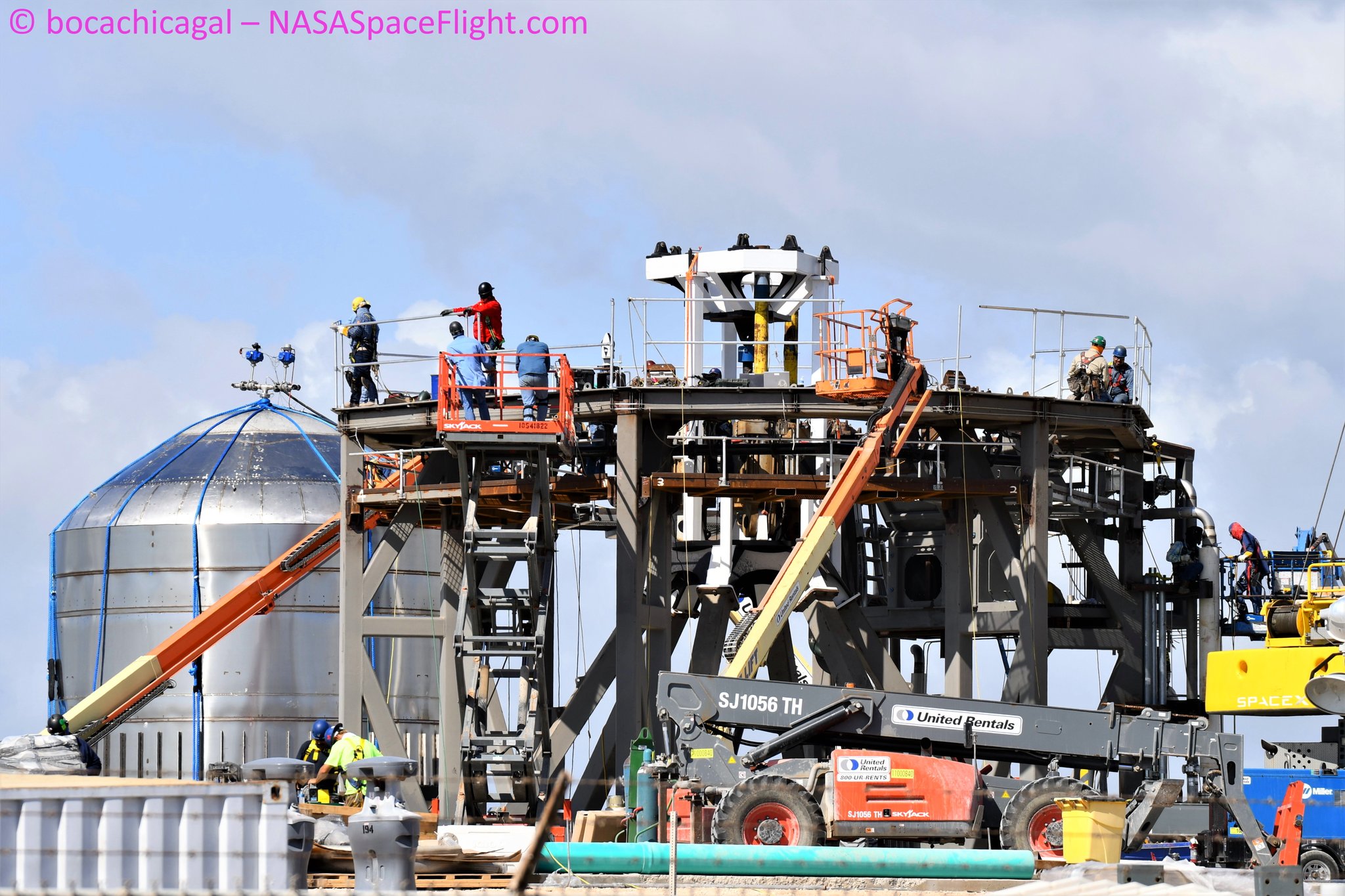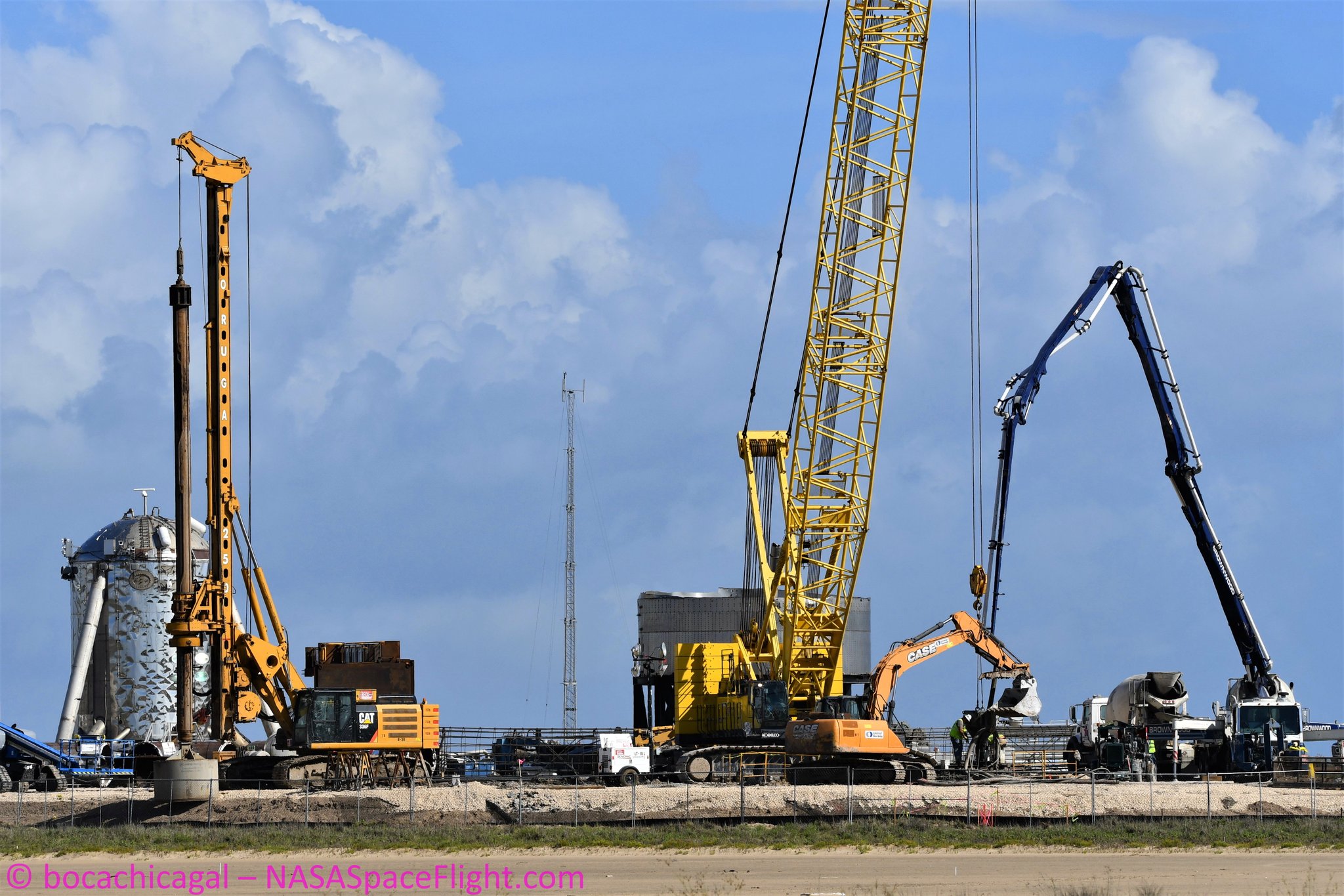 Панель запуска все еще совершенствуется, и SN7, похоже, почти готов к тестированию завтра. Параллельно продолжается закладка фундамента для стартовой площадки Super Heavy.