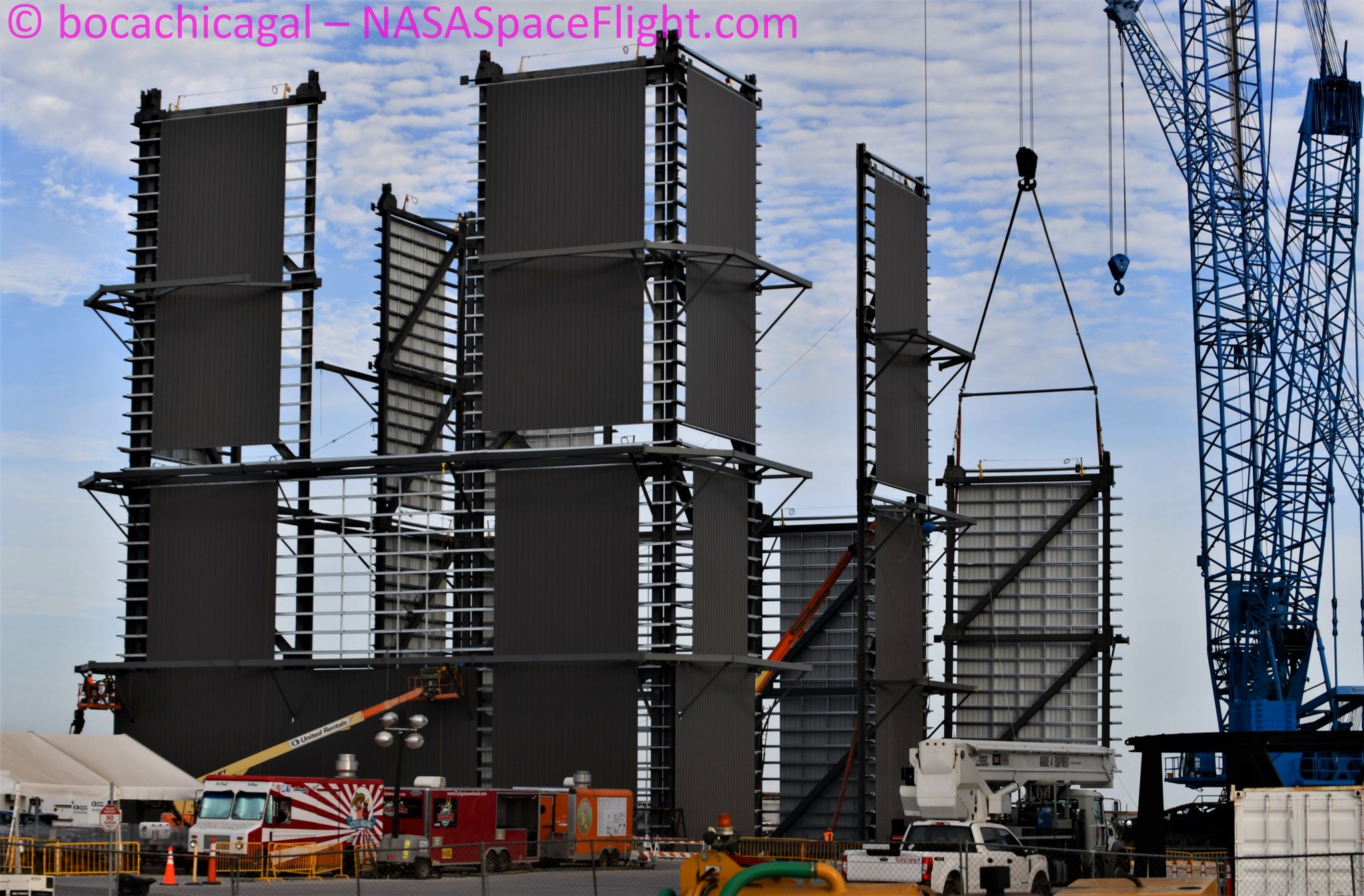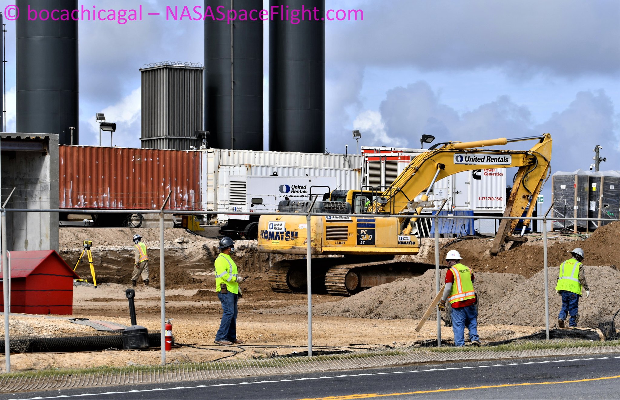если серьезно, то они устанавливают капитальный забор вместо временного... всего лишь сетка и "колючка" по-верху. Это, чтобы не мешать блогерам продолжать снимать фото и видео - респект Маску и его начальникам!