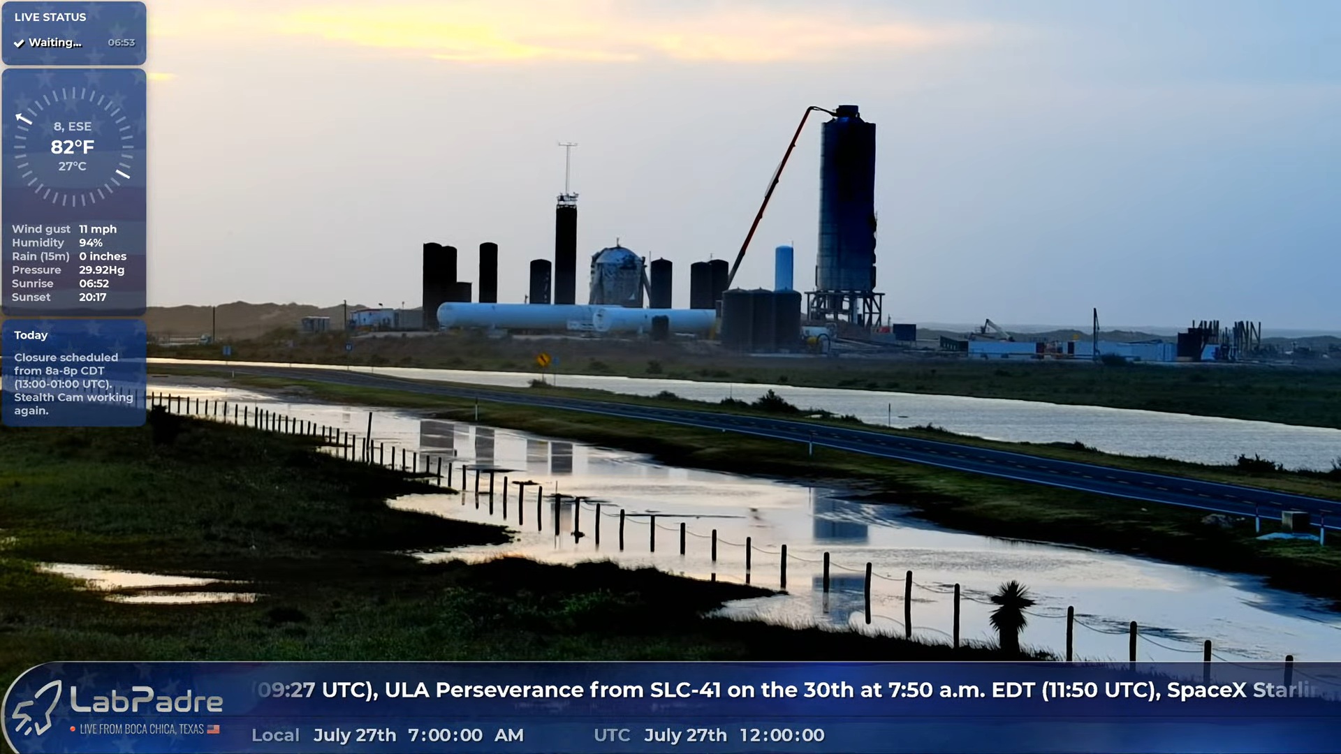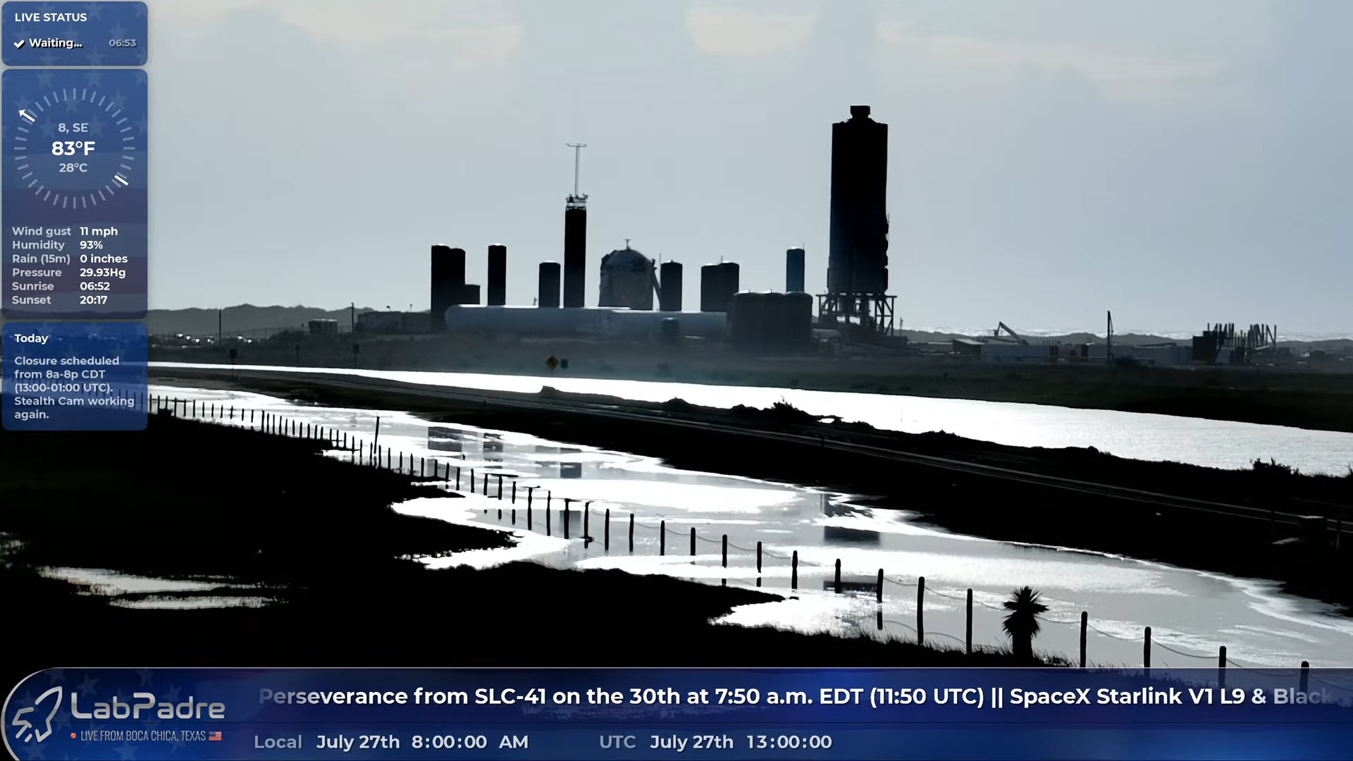 Цитата: V.B. от 27.07.2020 15:07:19Бока Чика, 07:00. Дождя нет, ветер слабый. Думаю, сегодня погода не помешает.