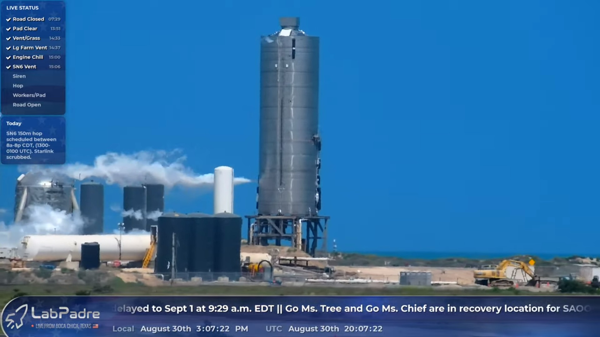 And we also have the Starship 150-meter flight on Sunday, 30 Aug.  Reminds me of the line from the movie Ghostbusters - "We might have to put a little overtime in on this one!"