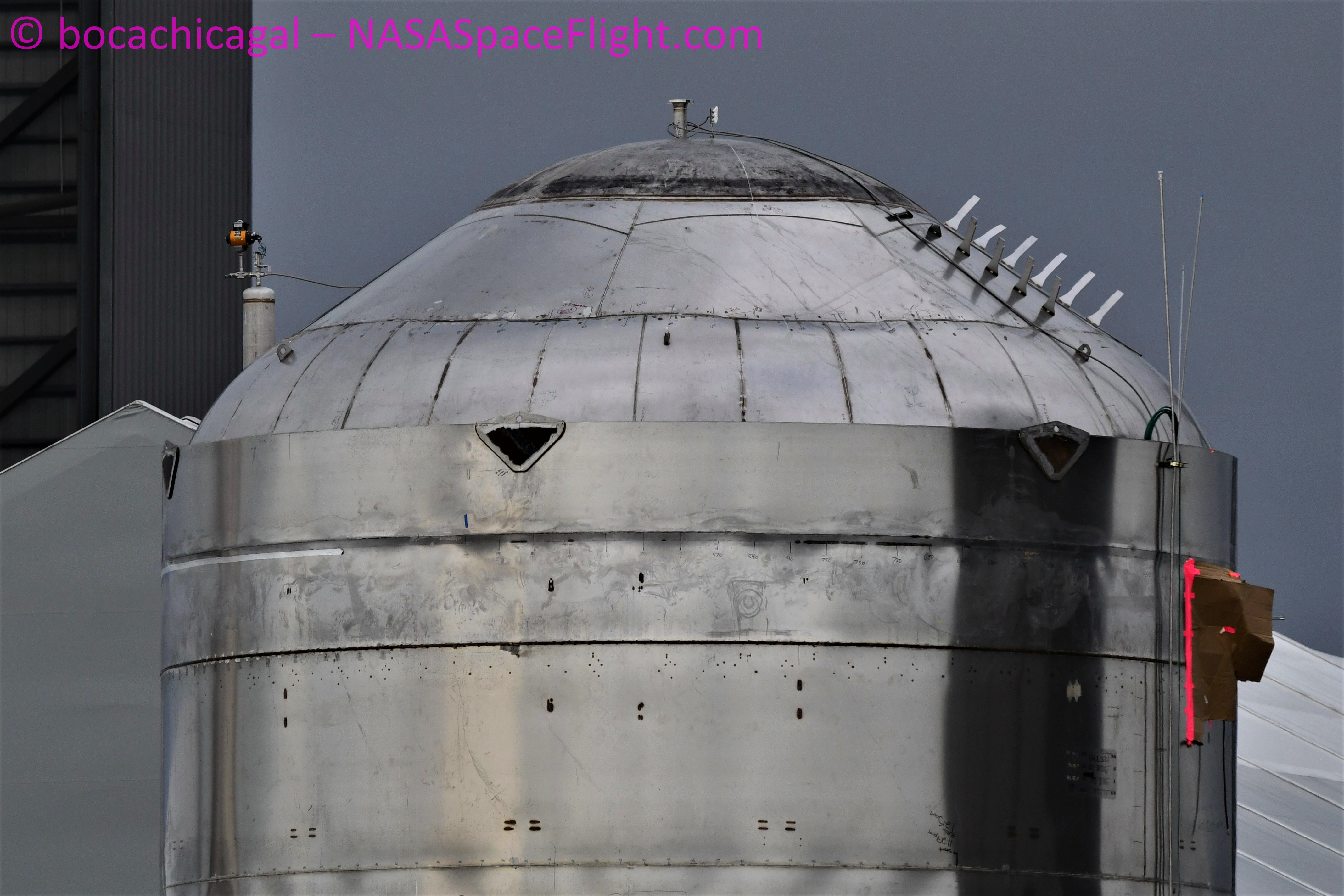 Следующий на очереди - SN7.1. Интересные детали: два ряда каких-то пластин на куполе (две погнуты) и какая-то закрытая чехлом штуковина справа на корпусе.
