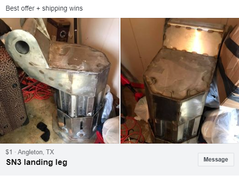 Электрик SpaceX пытается продать посадочную стойку SN3 на Facebook.