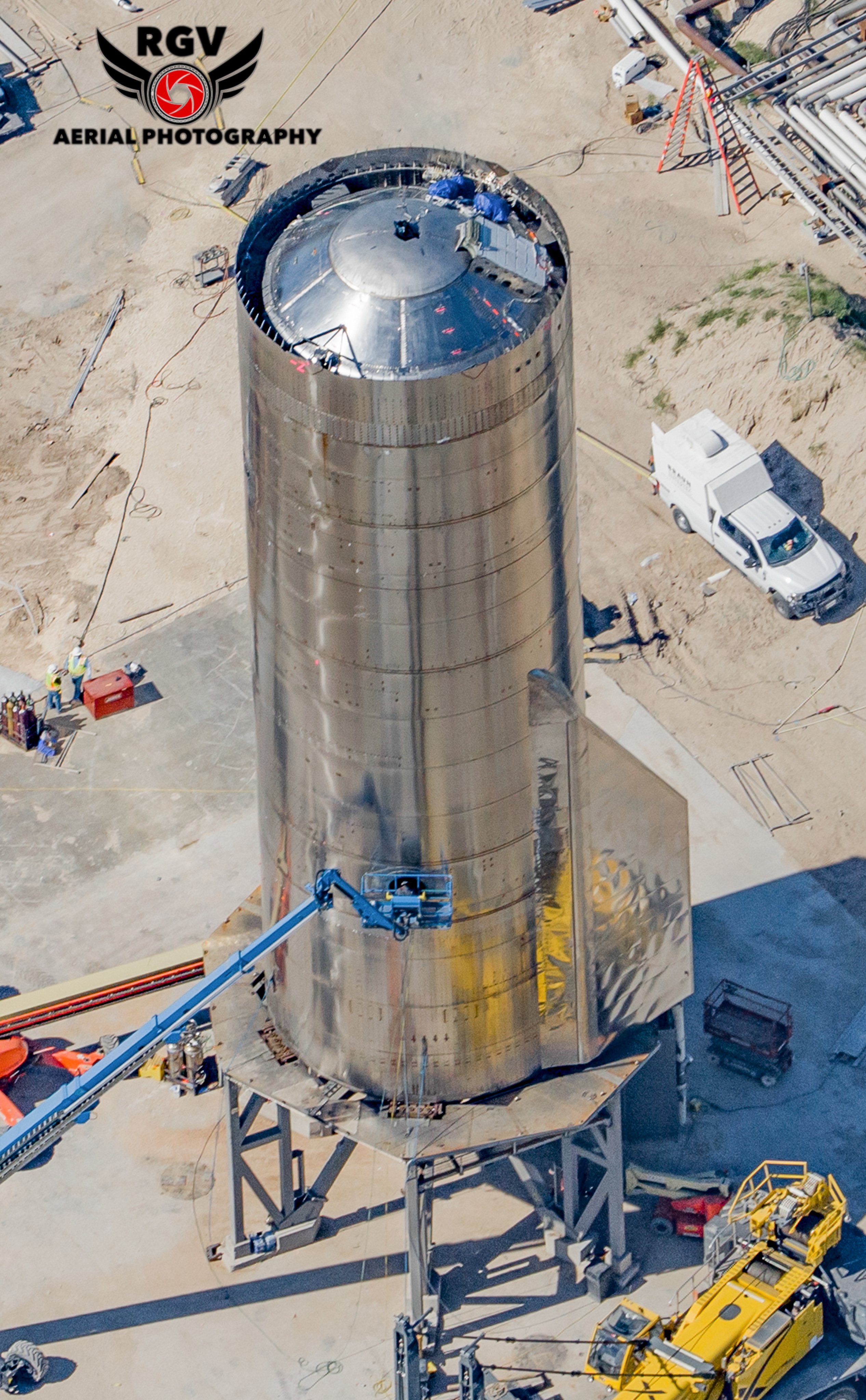 В Мидбэй загрузили нижнюю секцию SN9. Осталось соединить обе части, находящиеся в Мидбэе, и бак SN9 будет готов!