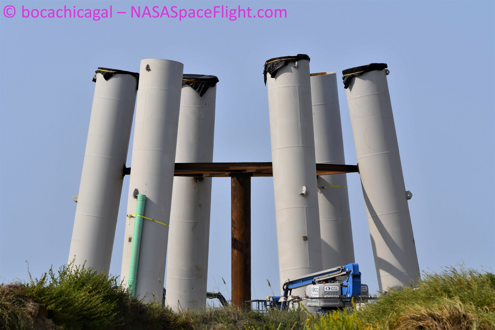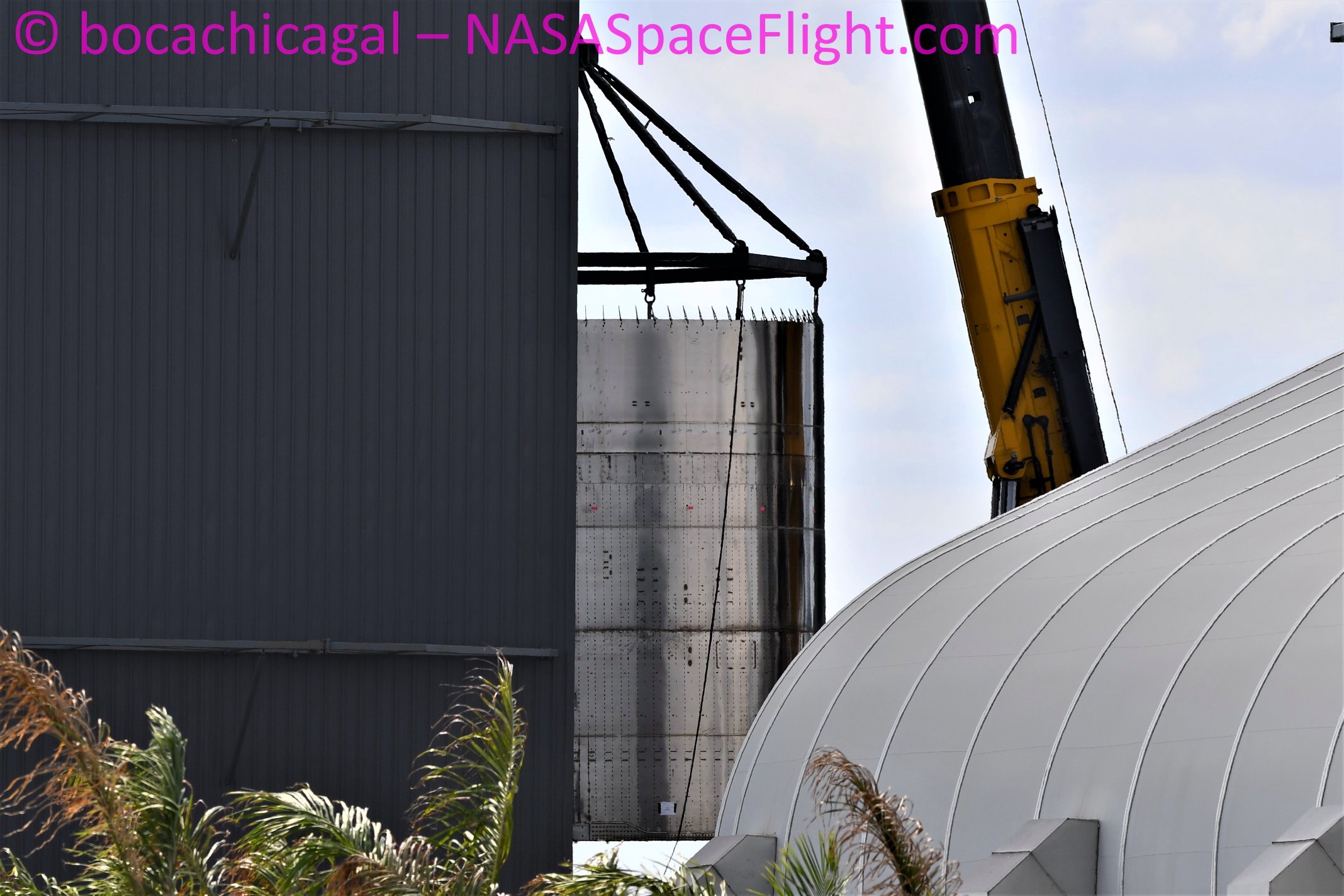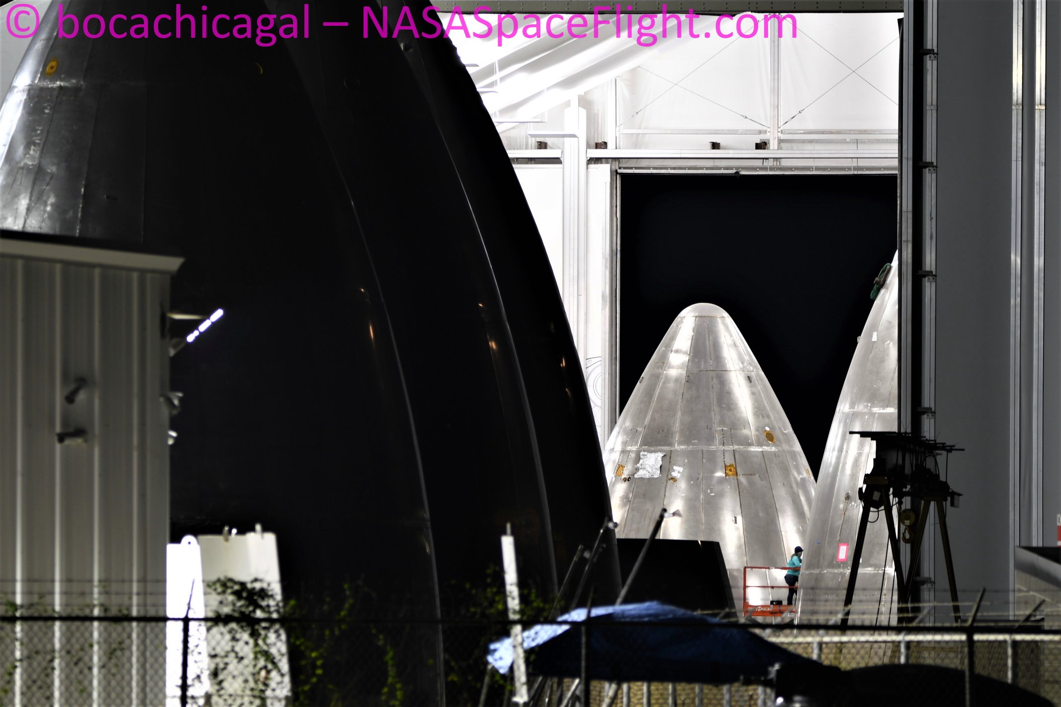 Толкающая секция прототипа SN9 присоединилась к MidBay, а SN6 транспортировался вместе с конусом Mk1.