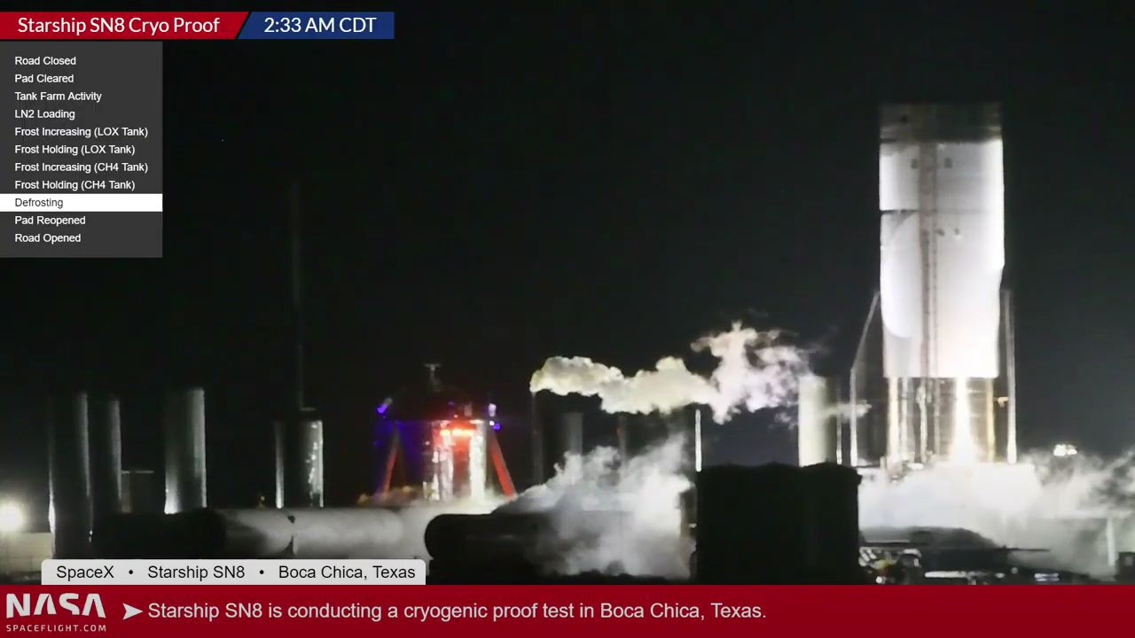 Сегодня ночью опять тестировали SN8. Тест окончен - надеюсь в этот раз уж точно все ОК.