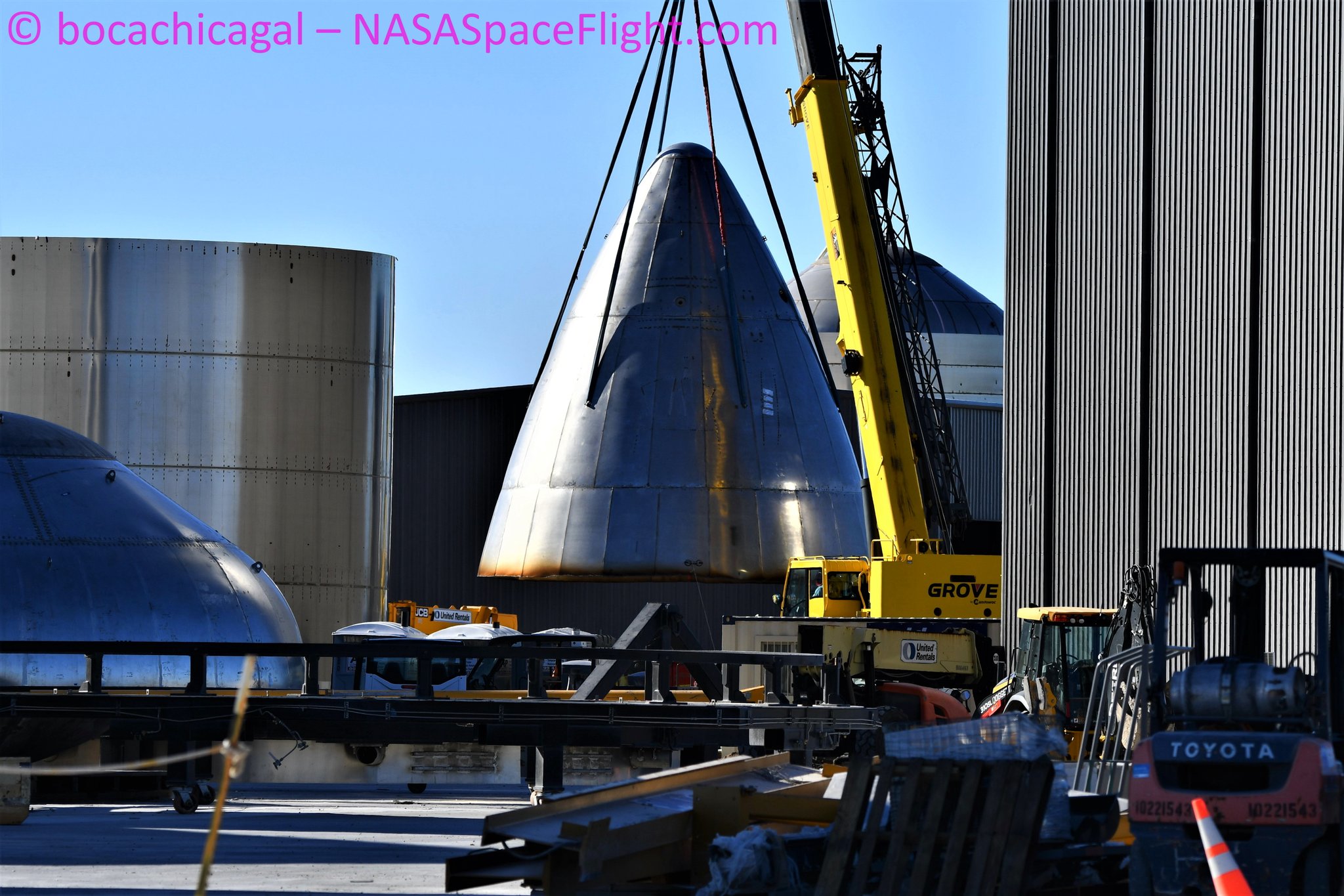 Прибыл новый транспортный модуль, на стартовую площадку доставили бетонные камеры, вырезали последнюю испытательную носовую часть.