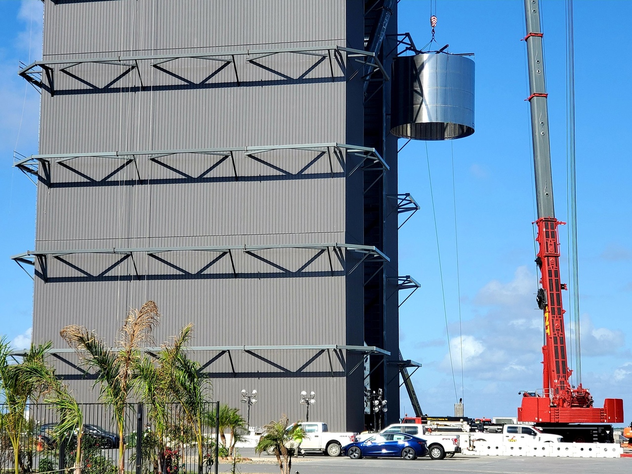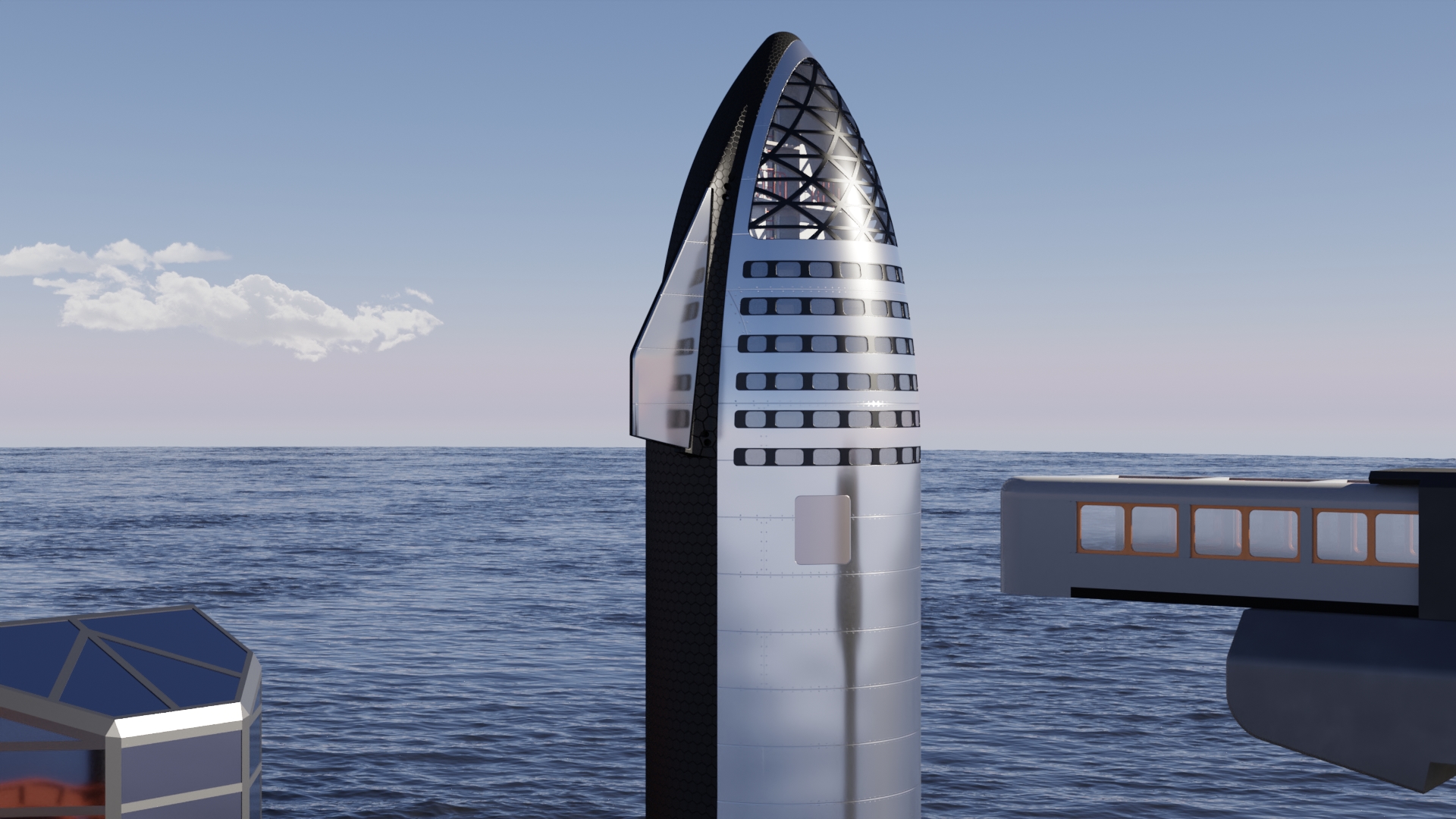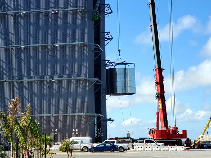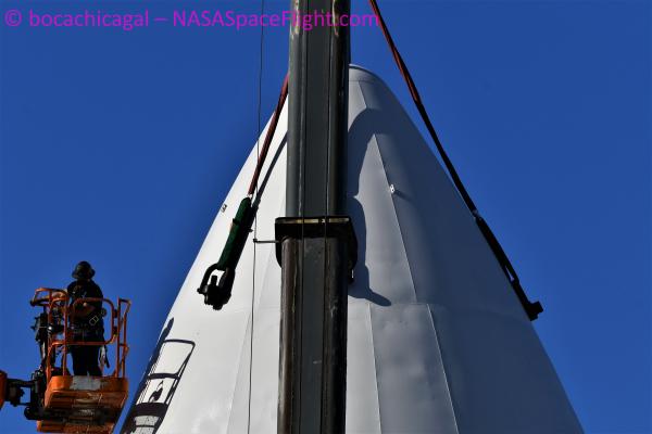 Я бы очень хотел посмотреть повнимательней, что происходит с покрашенным носовым конусом, который, вероятно, станет частью инженерного макета лунного Старшипа.