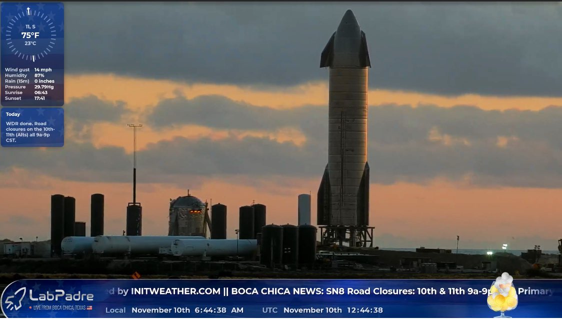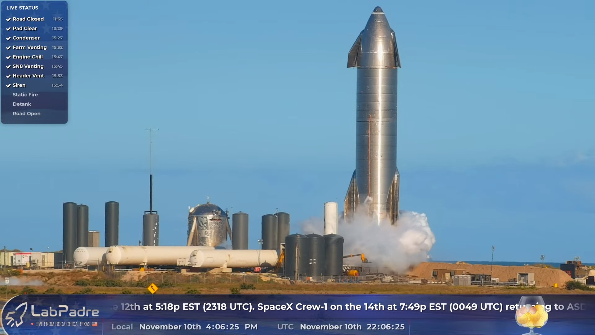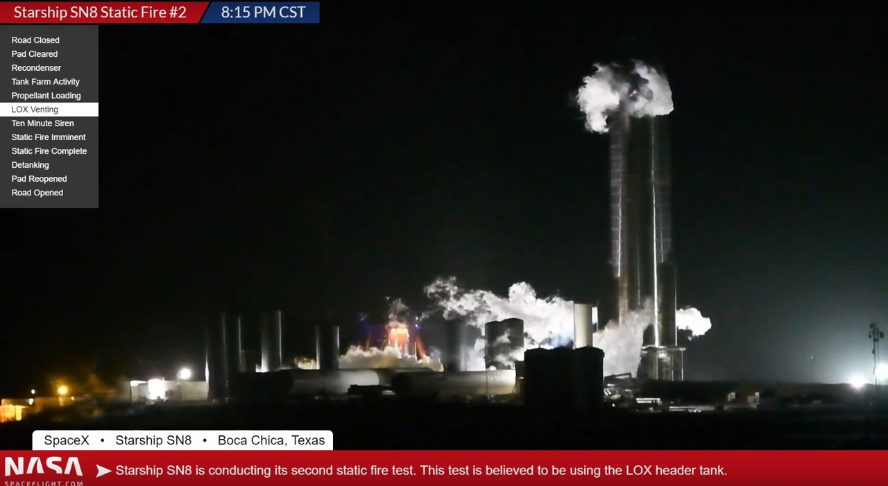 Сегодня ожидаются дополнительные испытания [Статический огонь (ы)]#Starship SN8 в