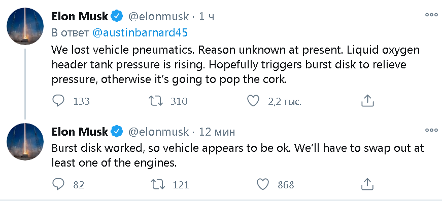 Цитата: Max Andriyahov от 13.11.2020 05:35:32Спейсы пролюбили пневмопривод клапана кислородного бака. Если вышибная мембрана не сработает - может бахнуть.