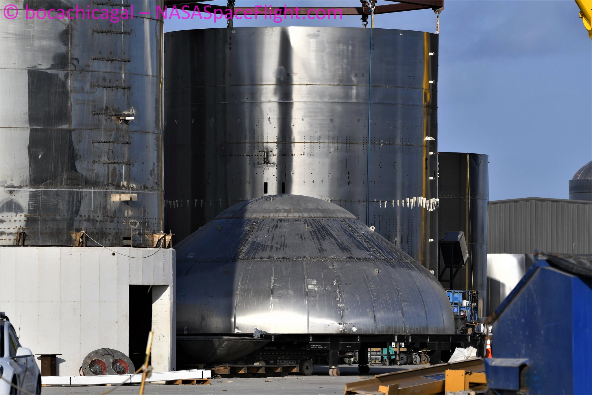 Пока носовая часть прототипа SN9 готовится принять свои элероны с установкой на них аэродинамического обтекателя, толкающая часть SN12 уже собрана.