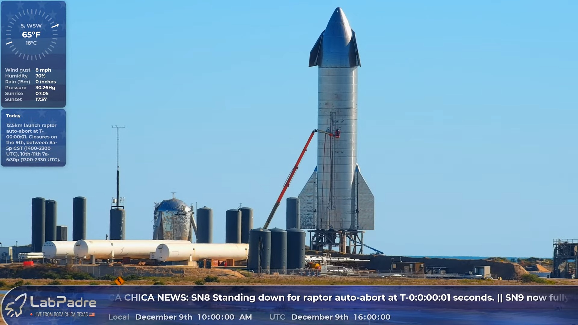1 час до открытия окна, в которое должен вылететь SN8.