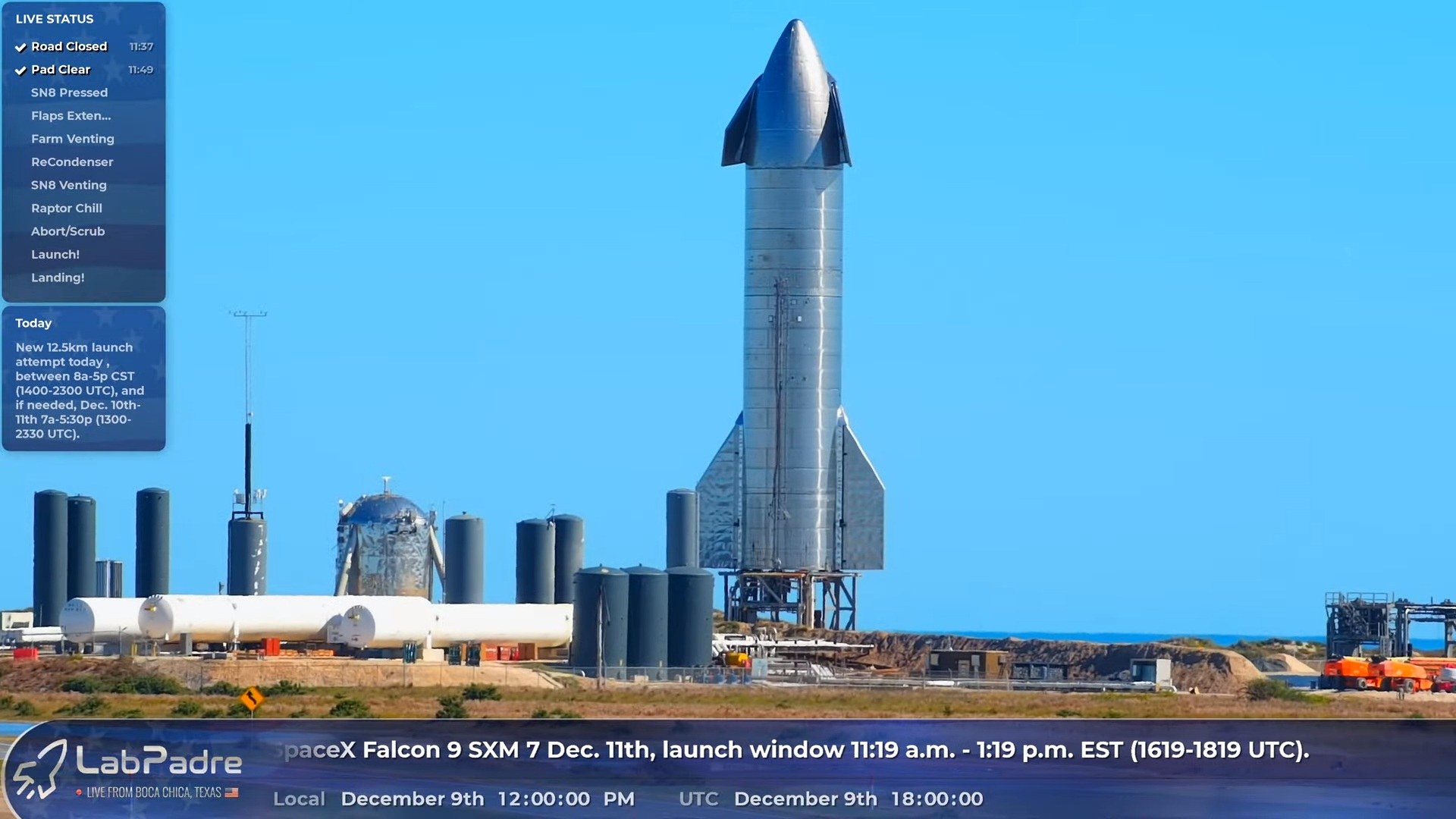 Вылет самолета теперь назначен на 14:30, соответственно вылет SN8 не ранее 15:00 (00:00 МСК).