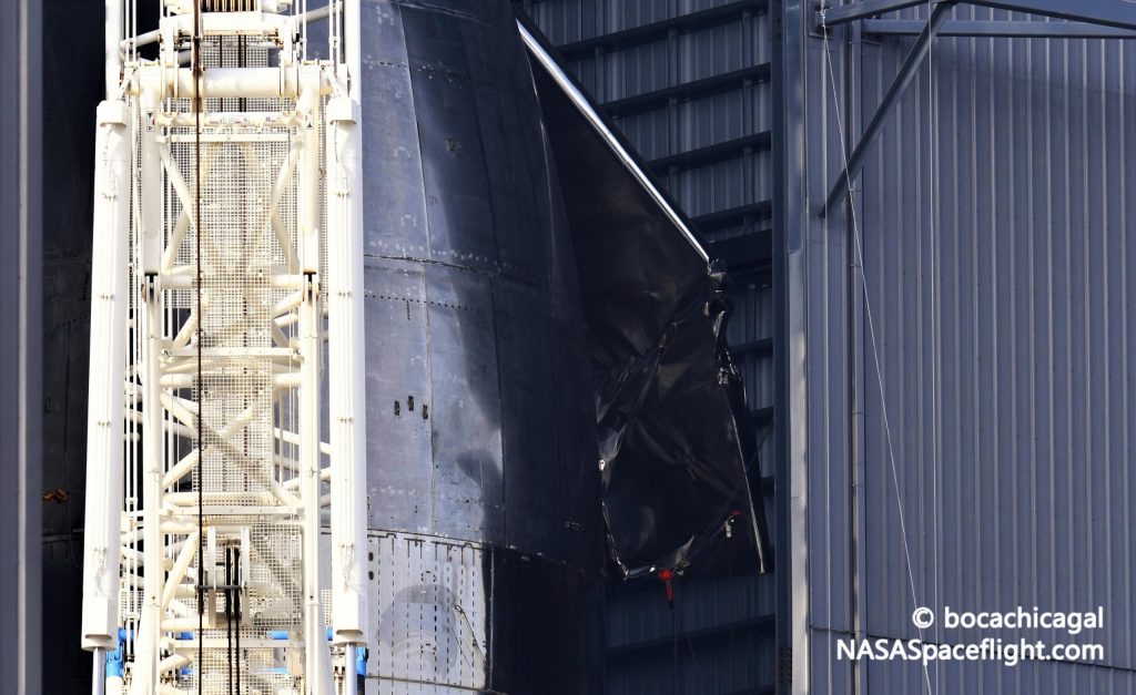 Повреждены носовые и кормовые закрылки звездолета SN9. (NASASpaceflight - bocachicagal)