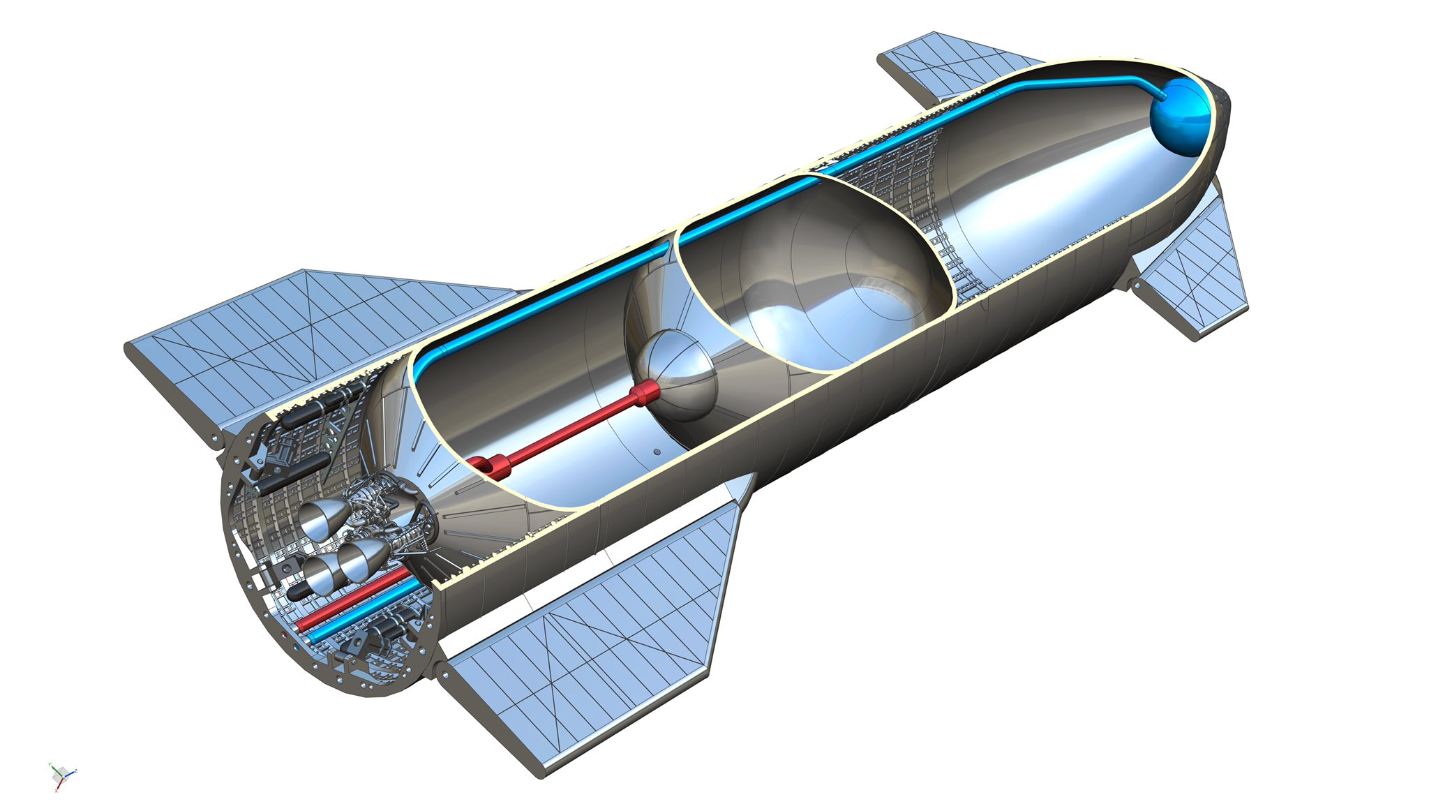 Старшип же будет заправляться через Суперхэви, у которого в верхней части переходного отсека будут находиться выдвижные разъемы GSE - как на стартовом столе.