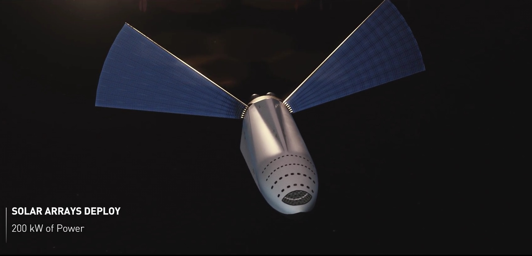 При полёте к Марсу Старшип будет ориентирован двигательным отсеком к Солнцу, что позволит защитить пассажиров от солнечной радиации. Так что веер тебе на фоточках показывают с тыльной стороны. Полная мощность такого веера потребуется, прежде всего, межпланетному кораблю, на других Старшипах такой веер, как правило, не нужен, а на лунном лендере нужны солнечные батареи другой конструкции.