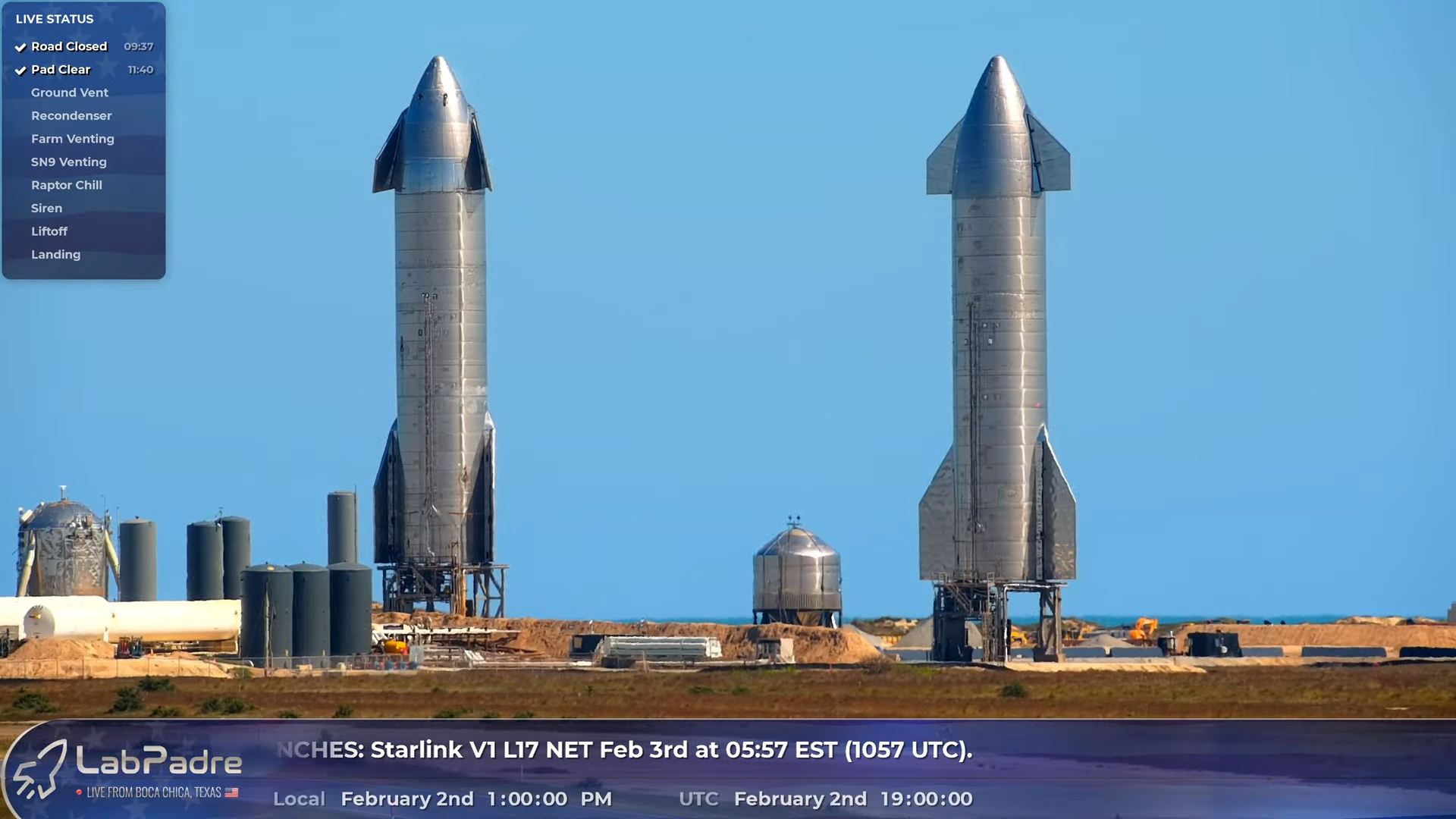 следующий захватывающий прыжок в Бока-Чика, завтра в 5:57 #Starlink17 взлетит с площадки 39A в KSC, и в четверг#Starlink18 поднимется с площадки SLC40 на мысе Канаверал, оба ночных полета!
