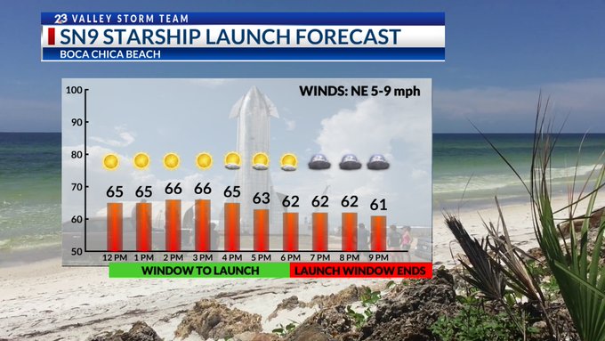 почасовой прогноз на пляже Бока-Чика! Окно запуска заканчивается в 18:00.#TXwx#RGVwx#SpaceX