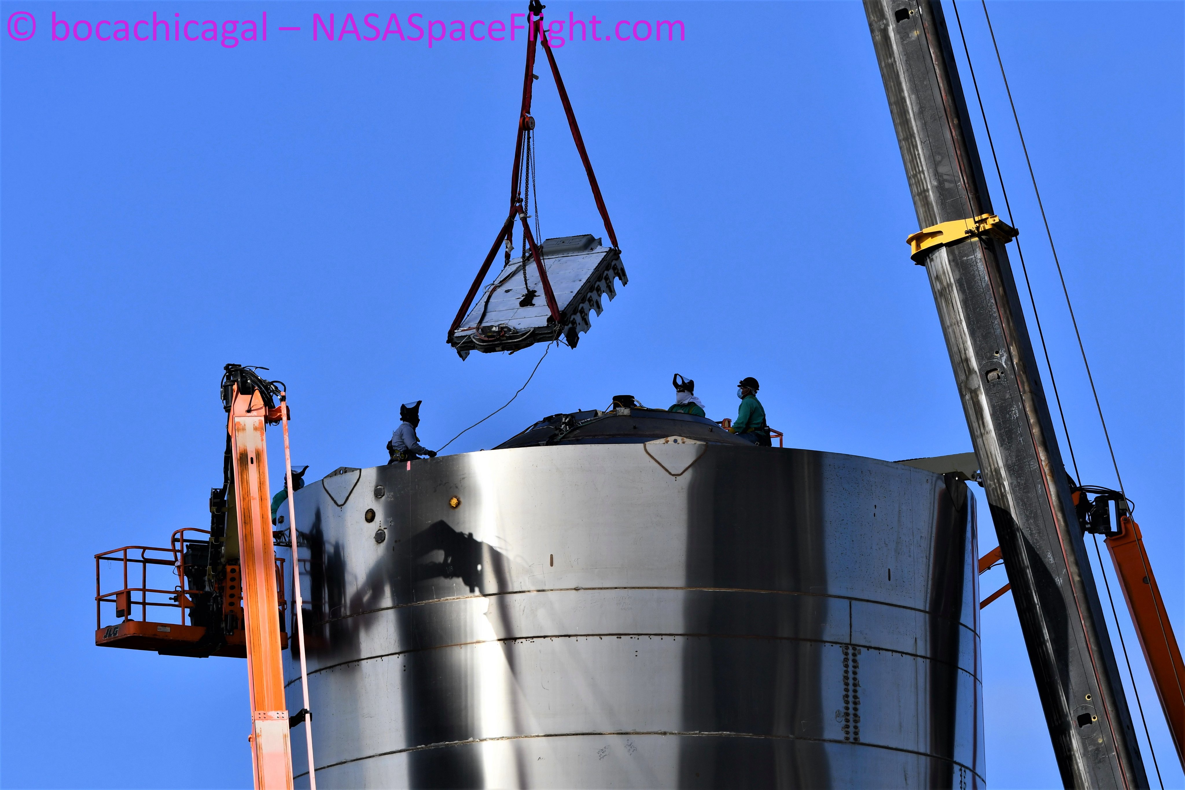 сборка секции CH4 из#BN1 кажется, продолжается. Юбка#SN16 Было замечено, у нас, кажется, более широкие посадочные площадки, чем в предыдущих версиях. Обычно SN15 должен иметь то же самое (Фото 4: Old Feet, SN5, SN6,...)