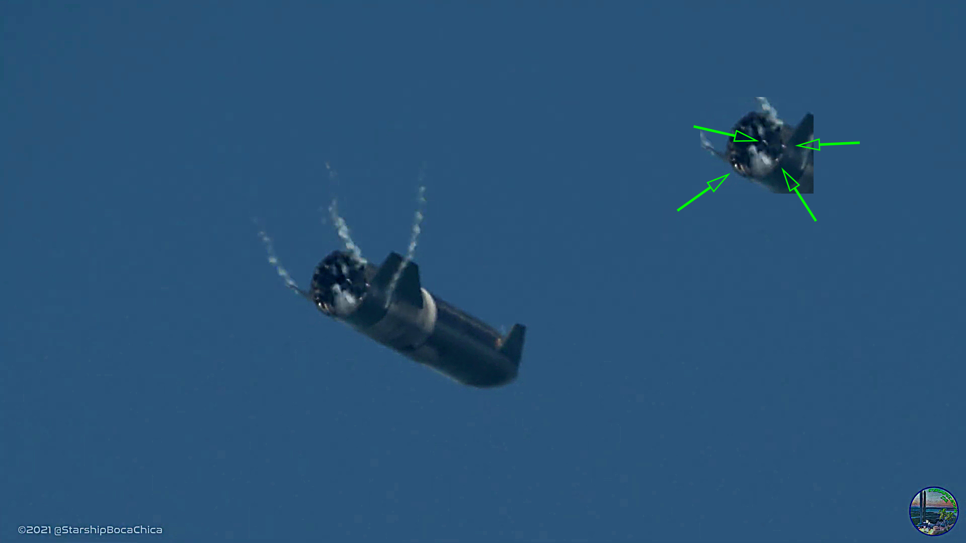 Косвенно всё это подтверждает, что проблема SN9 была именно в двигателе, а не в наддуве посадочного бака, как при посадке SN8. Если бы был виноват наддув, то третий двигатель тоже не включился бы.