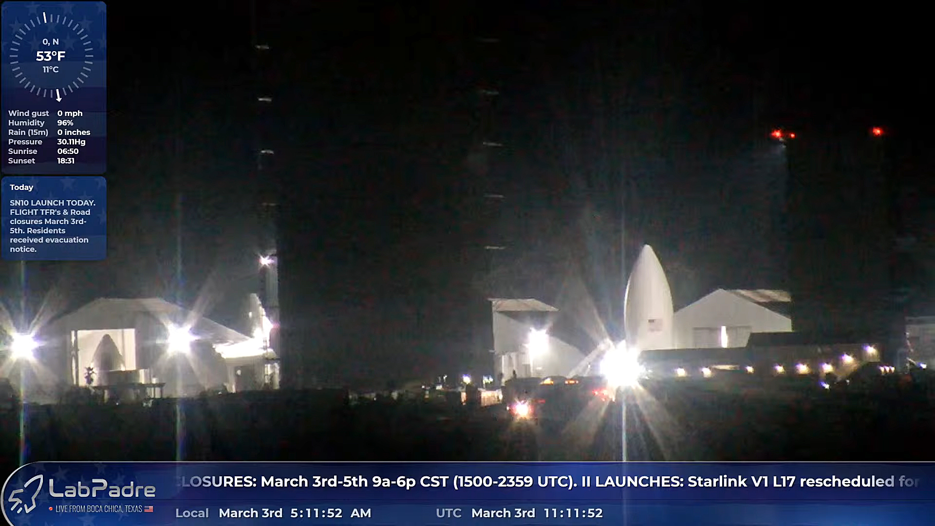 На трансляции LabPadre в палатке видно ещё один конус обтекателя - у него верхушку не срезали: