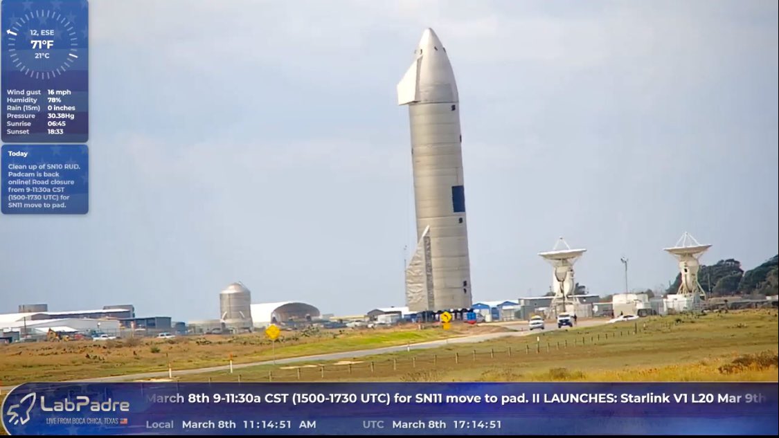LIVE: Starship SN11 rolls out to the launch site in Boca Chica