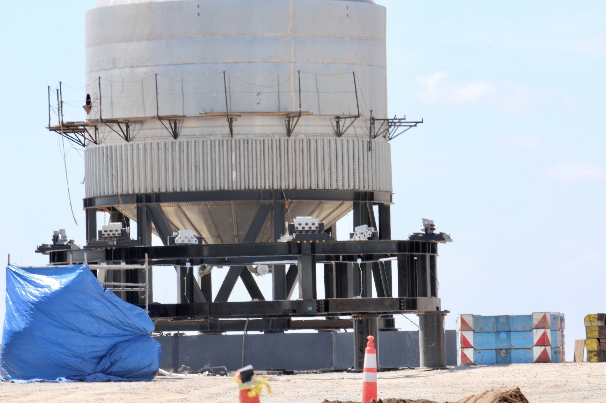 На орбитальной стартовой площадке продолжается работа по установке топливного бака. Ожидается установка второго топливного бака