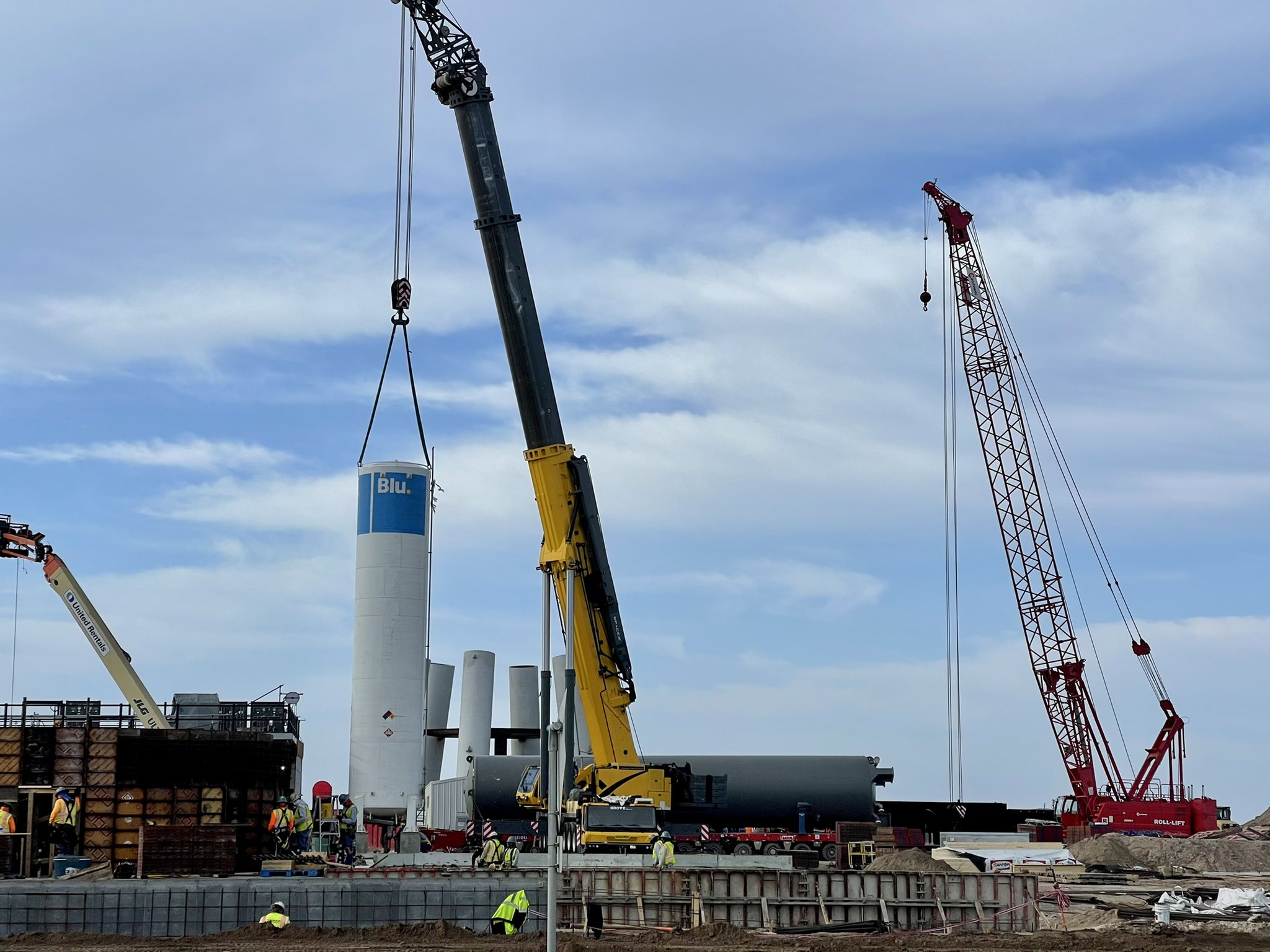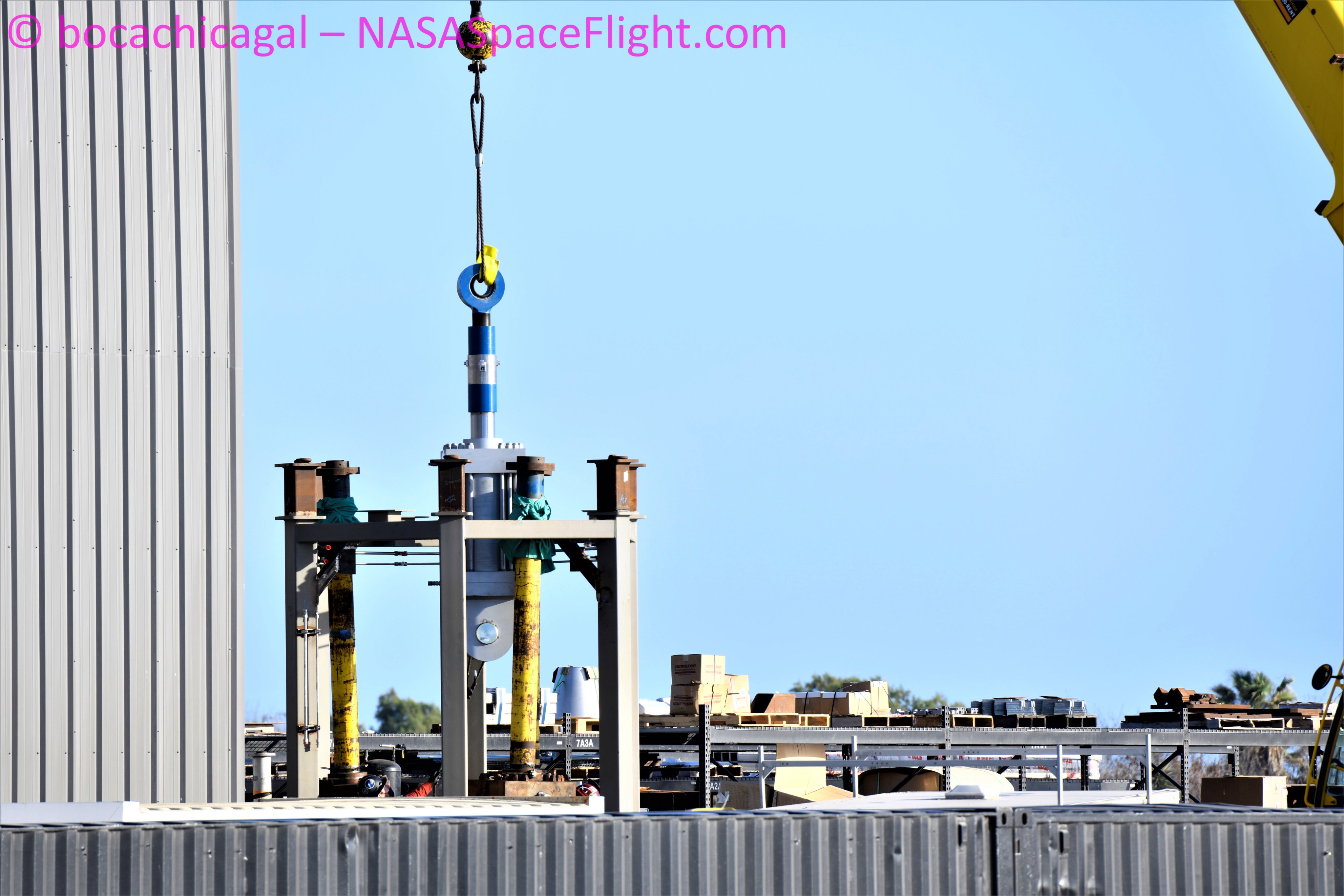 (3/4) В верхней части HighBay работы все еще продолжаются, пока#BN1 должны быть собраны очень скоро. Возникает система гидроцилиндров, в ближайшее время она должна быть присоединена к Thrust Simulator, будет использоваться для испытаний на БН1.