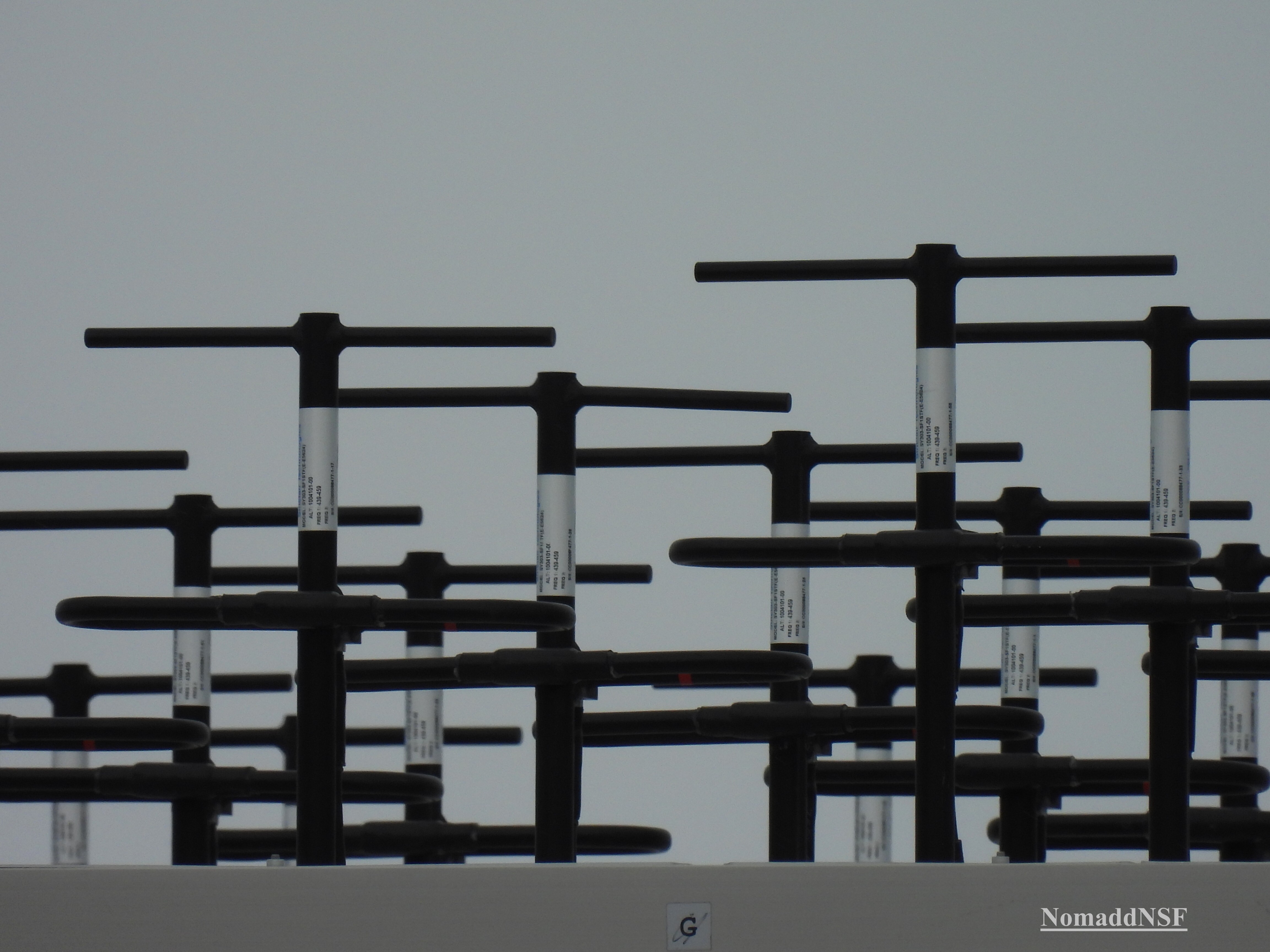 Установка для роботизированной лазерной сварки конуса обтекателя из длинных заготовок - обретает законченный вид (треугольный ангар). Чёрные защитные шторки: