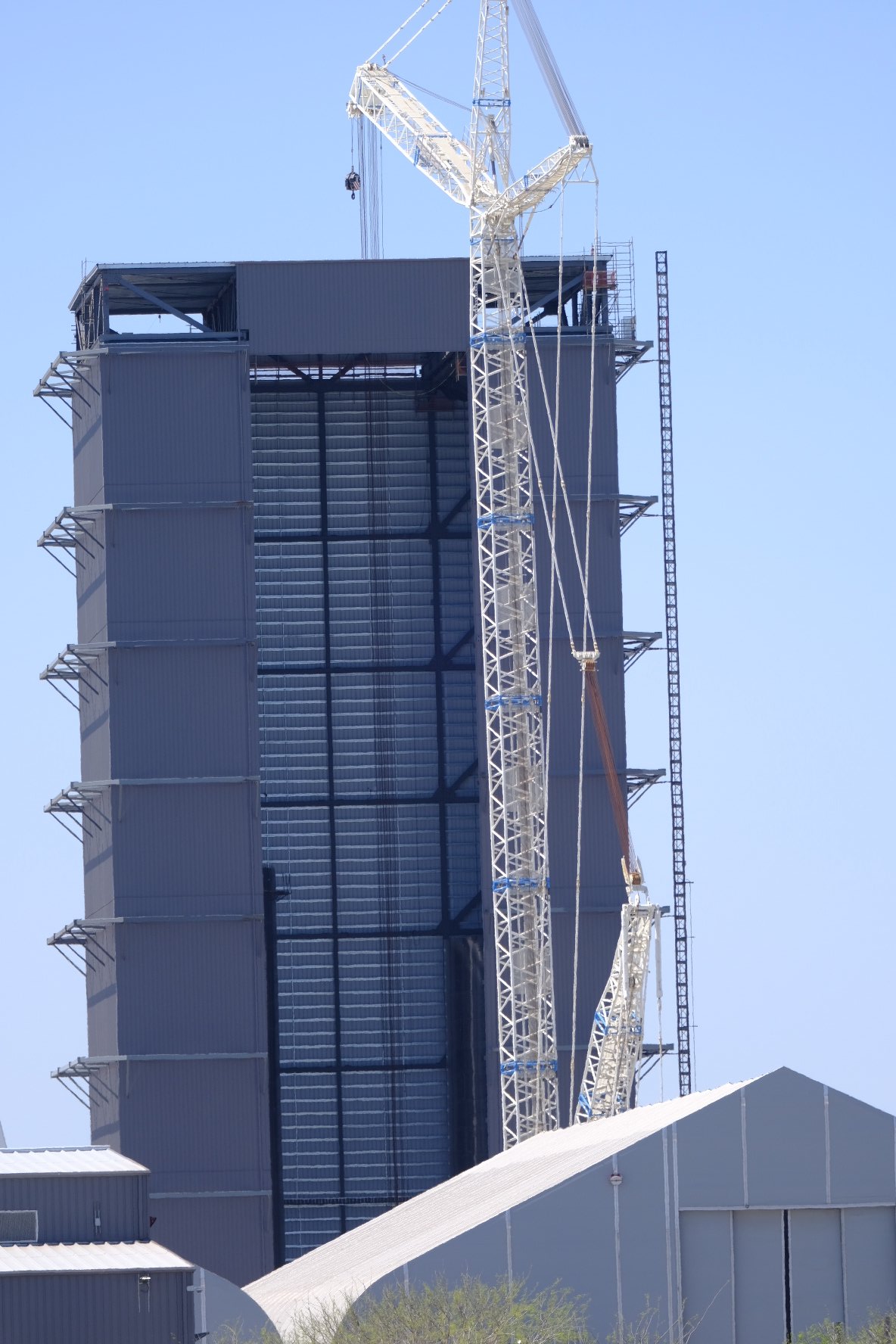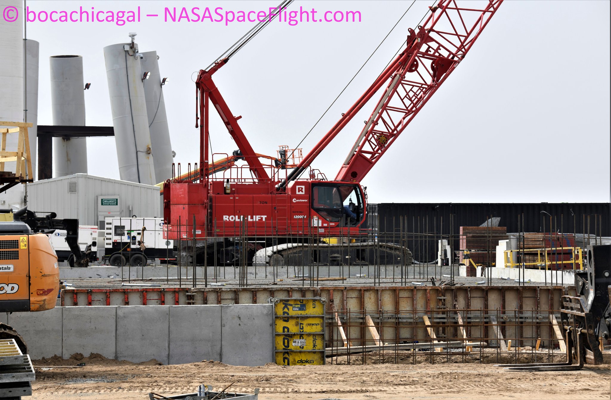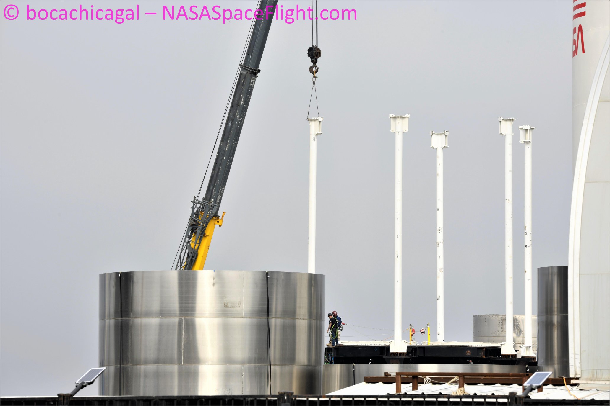 секция прототипа SN18 была собрана вместе с юбкой, в то время как команды SpaceX прикрепили столбы вокруг новой конструкции.