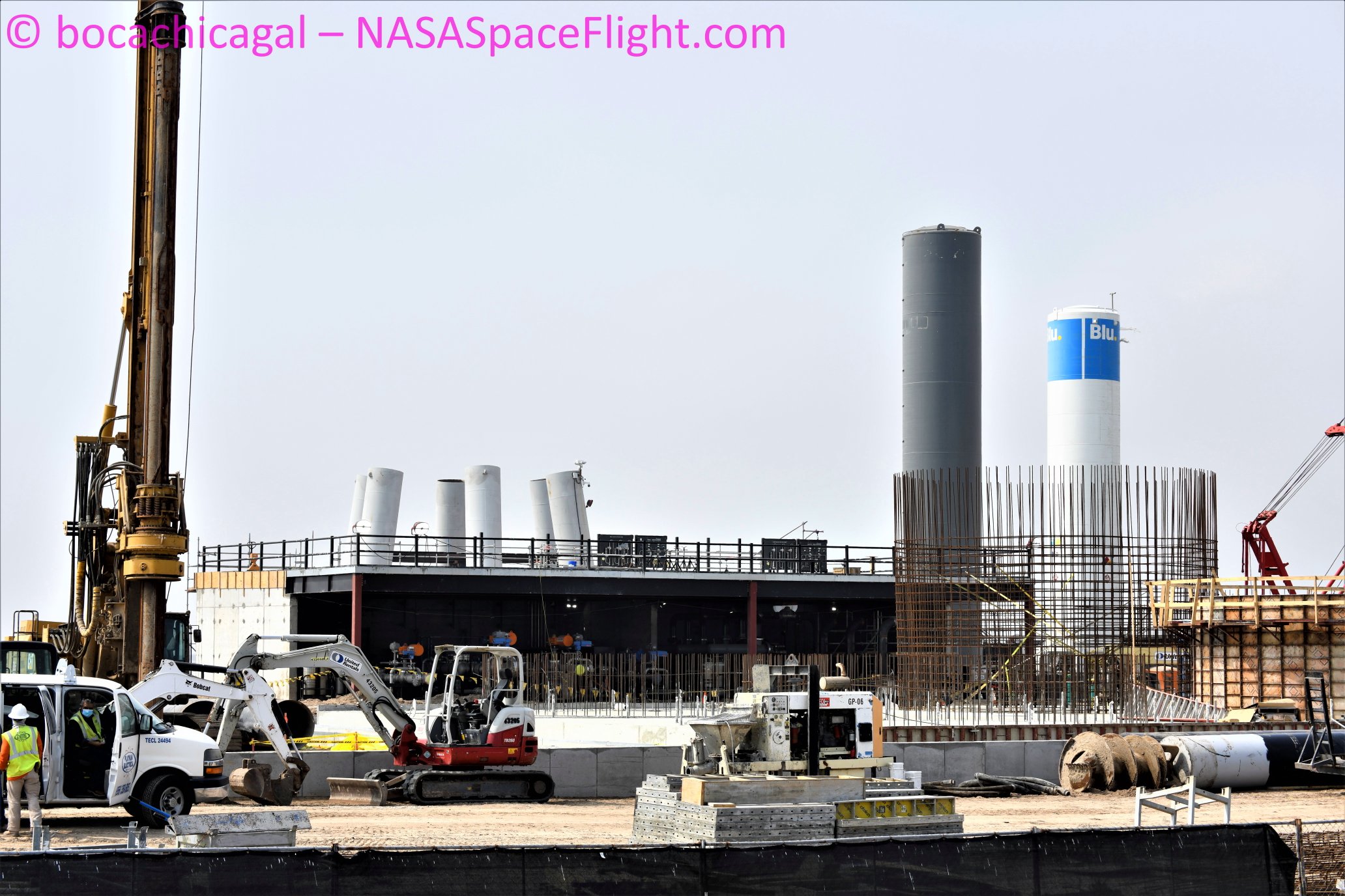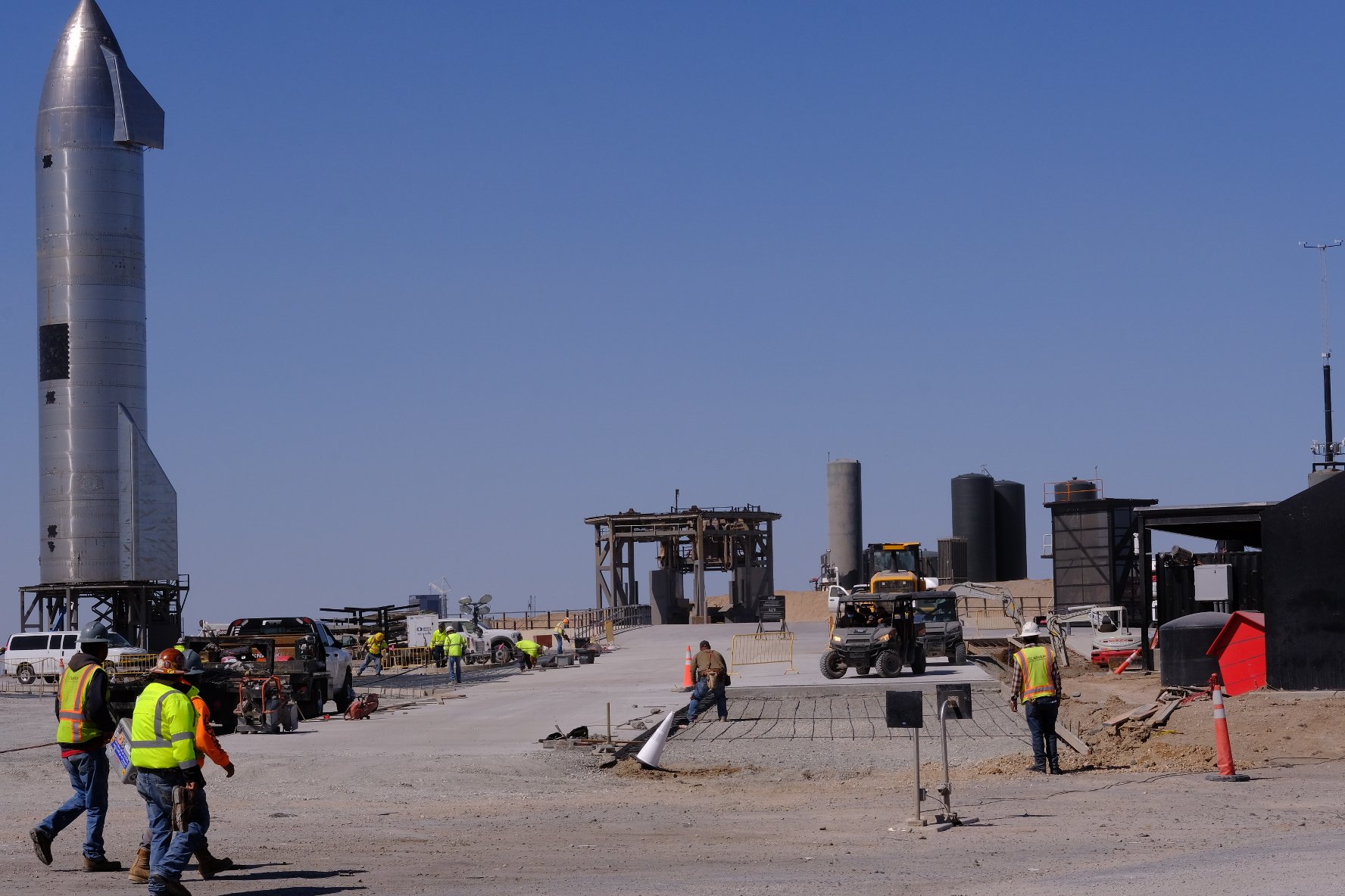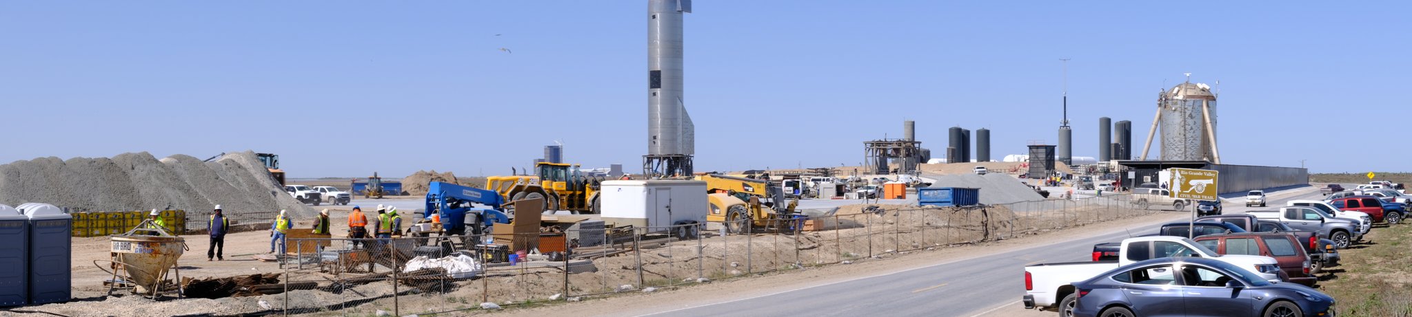 секция прототипа SN18 была собрана вместе с юбкой, в то время как команды SpaceX прикрепили столбы вокруг новой конструкции.
