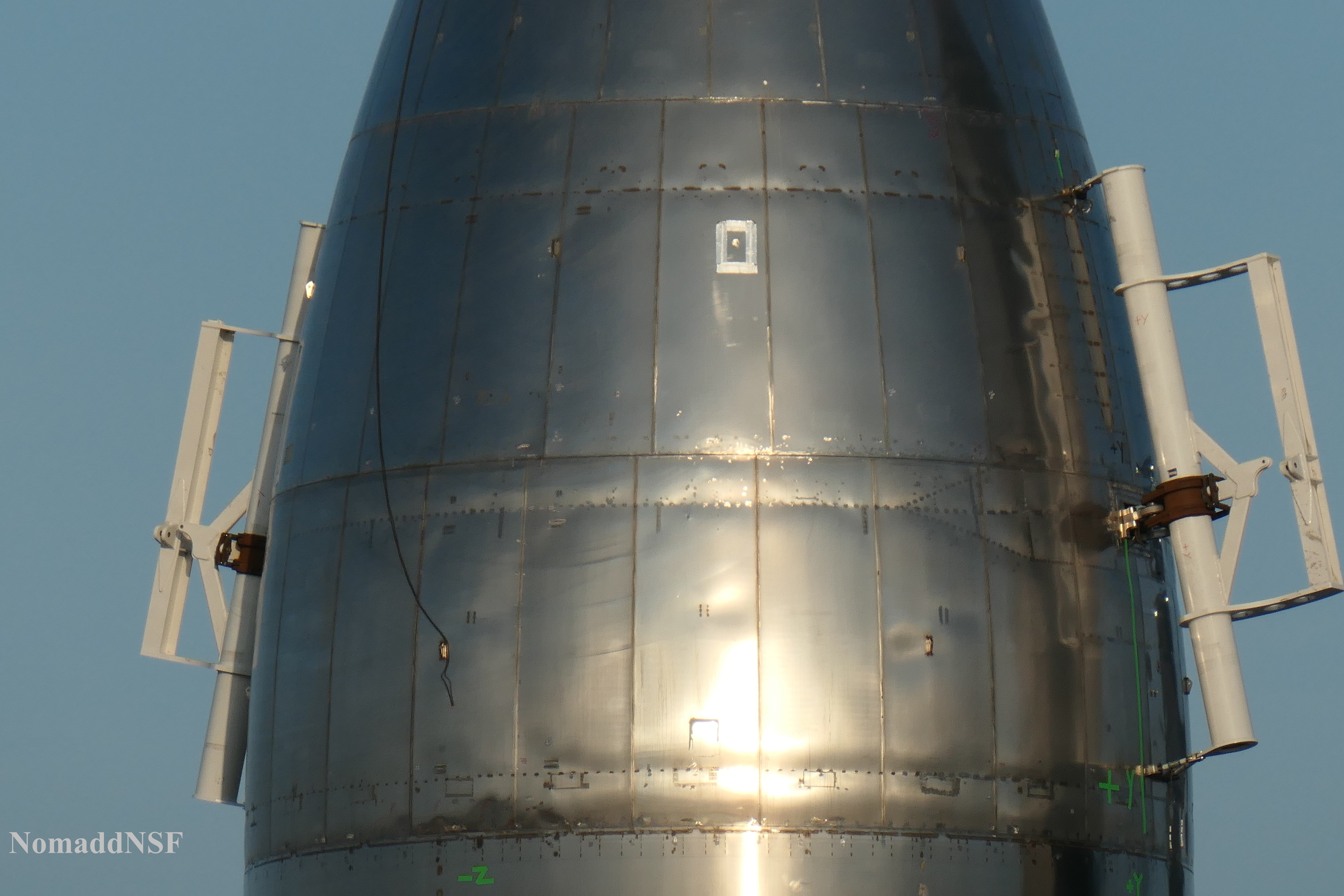 Гипотеза: возможно между Рапторами будут опорные точки (тоже 20 штук), на которых СХ будет стоять на старте. Тогда в эти вырезы могут быть встроены собственно опоры с замками.