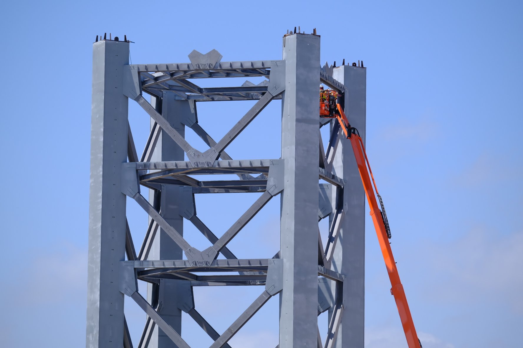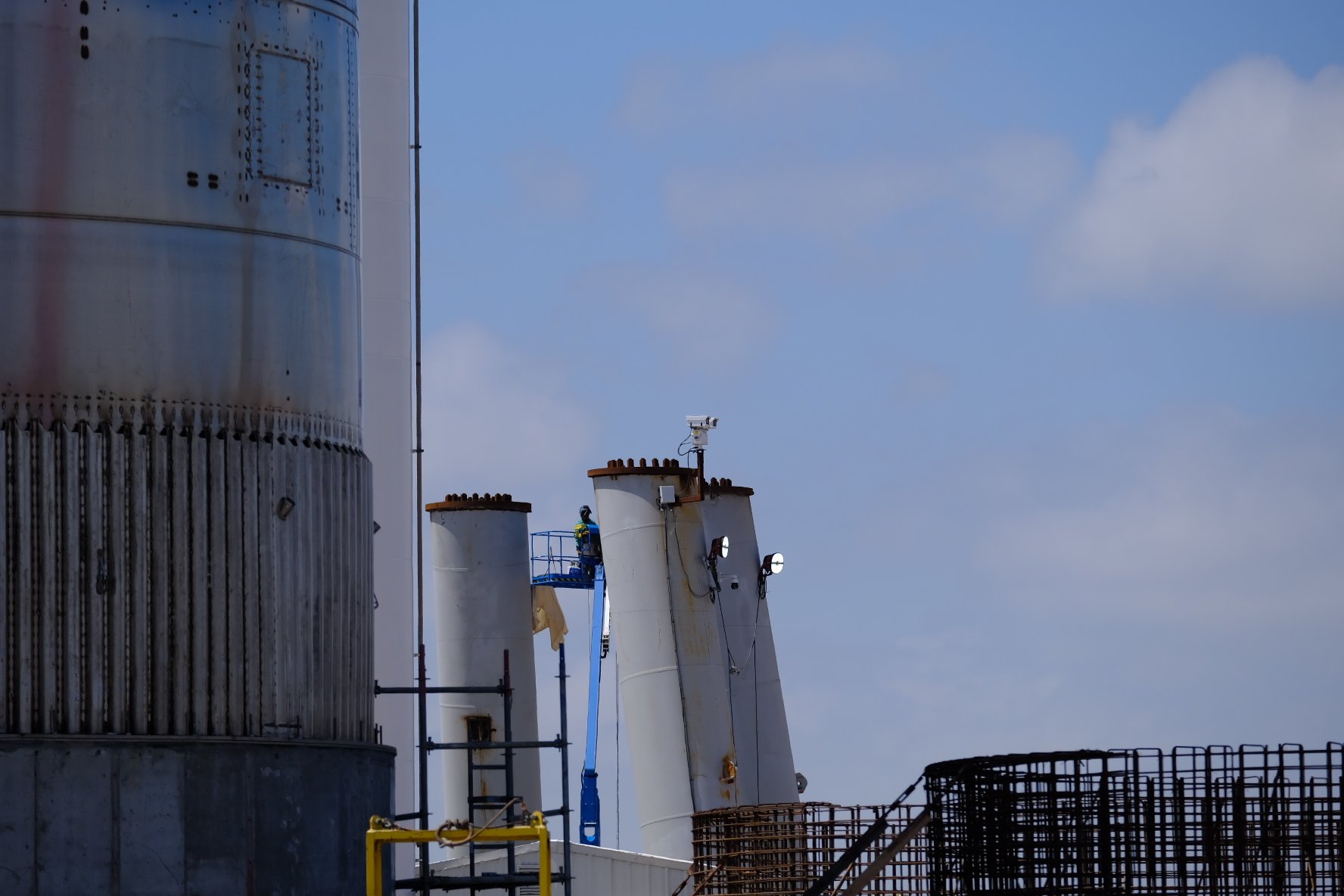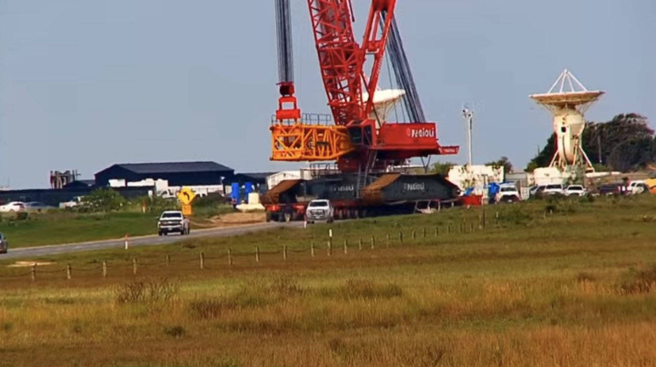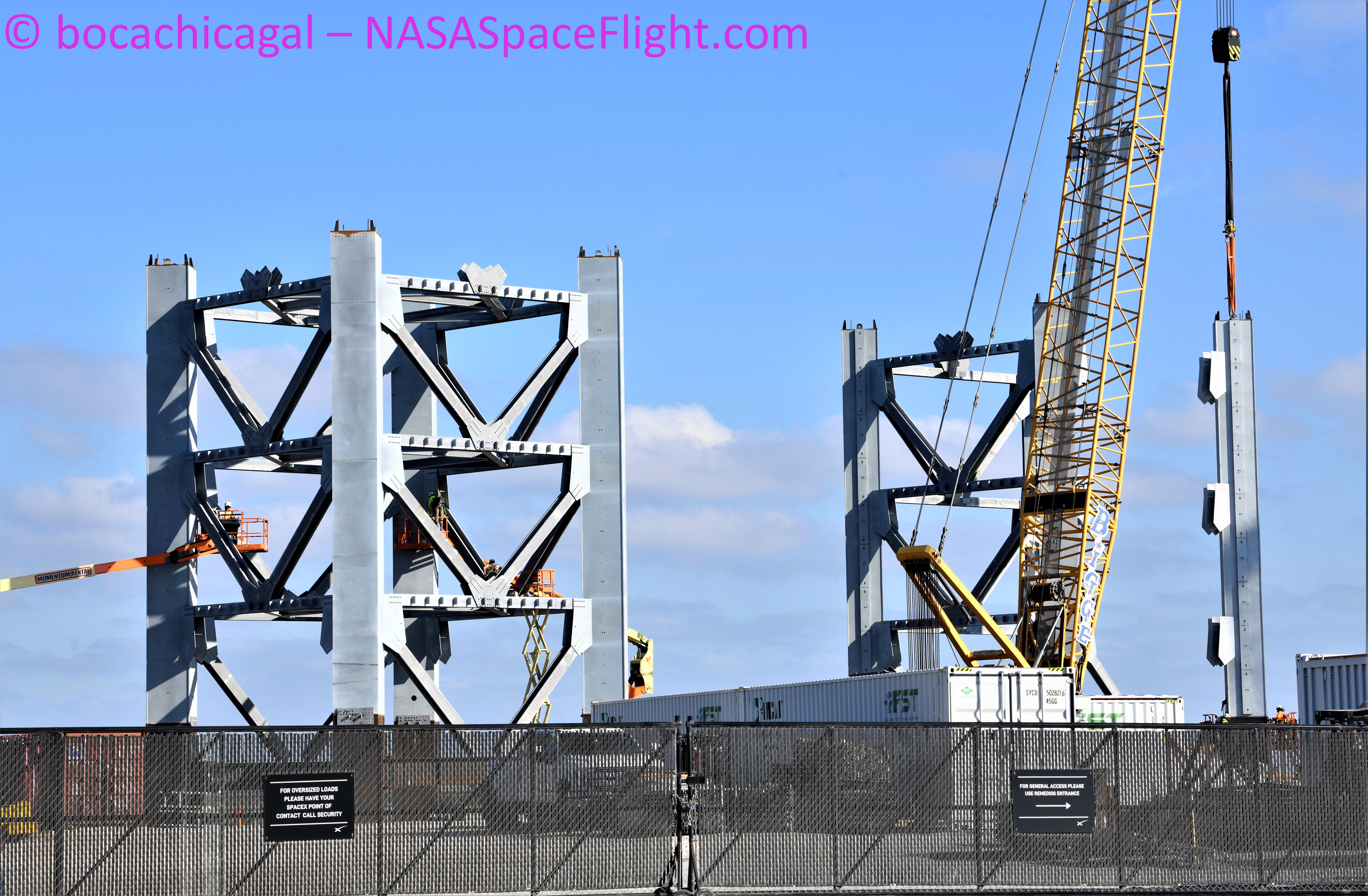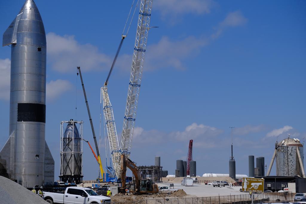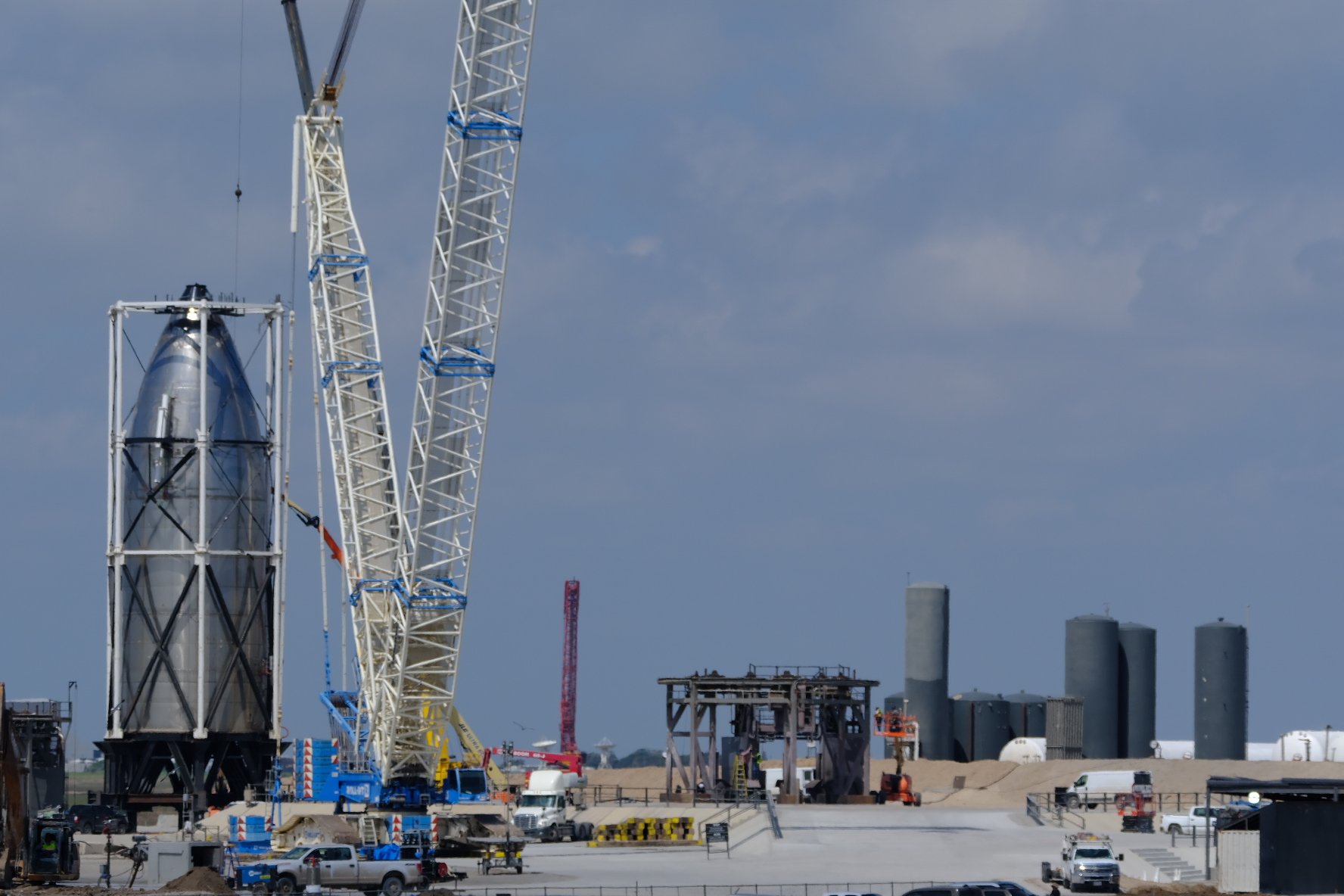 Вижу две, причем кажется они не касаются площадки. В этом случае SN15 уже на транспортере, причем оказался он на нем без использования крана. Пока непонятно, как это получилось.