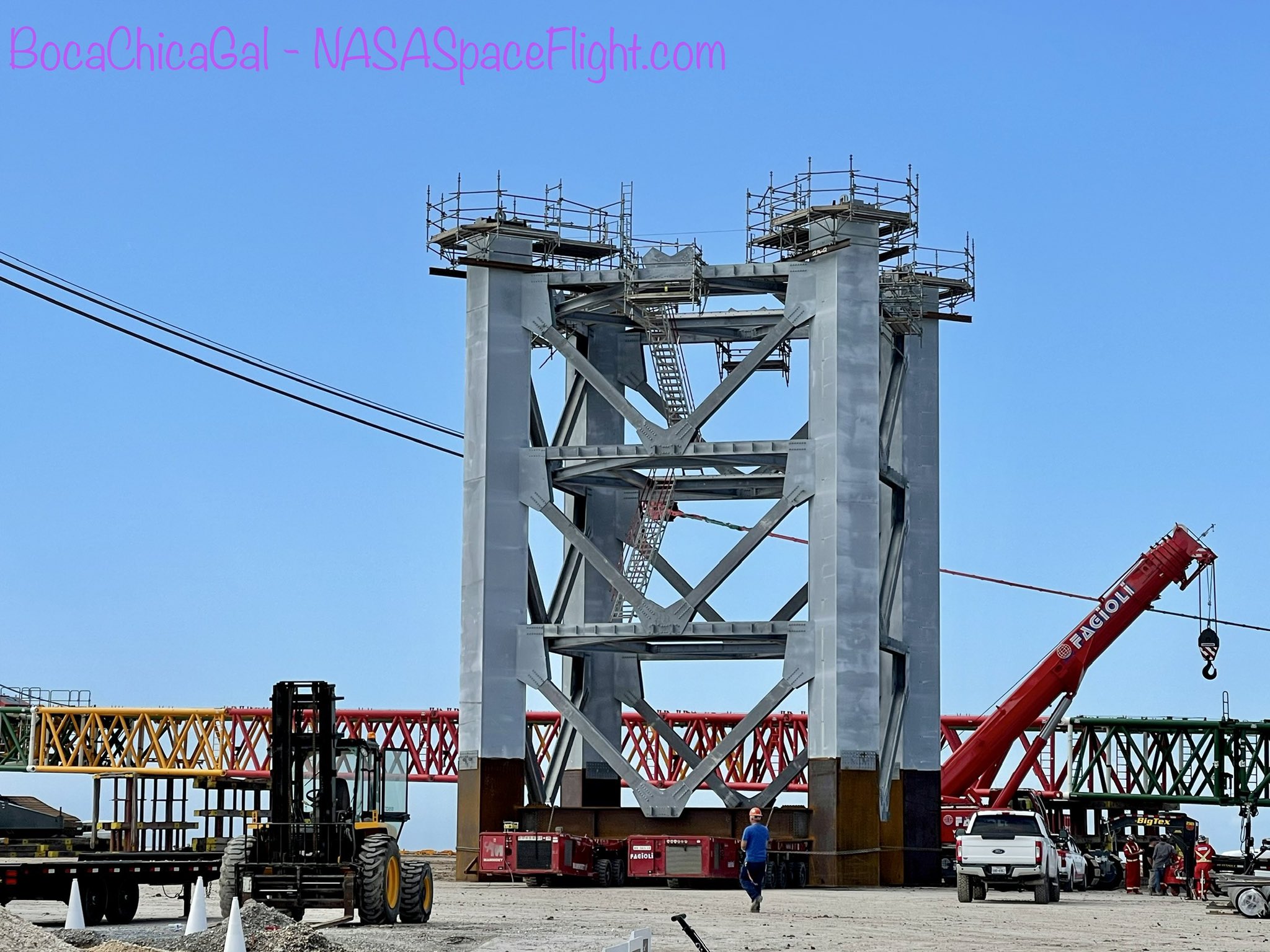 Цитата: ronatu от 21.05.2021 22:33:38То что строиться сейчас - башня для сборочного крана - чтобы поставить ступень №2 сверху ступени №1. Кран с противовесом будет на самом верху.
