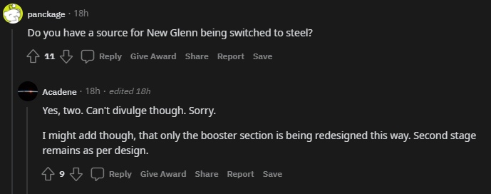 То есть, вероятно, что New Glenn в одной из модификаций теперь будет уменьшенным клоном Старшипа...