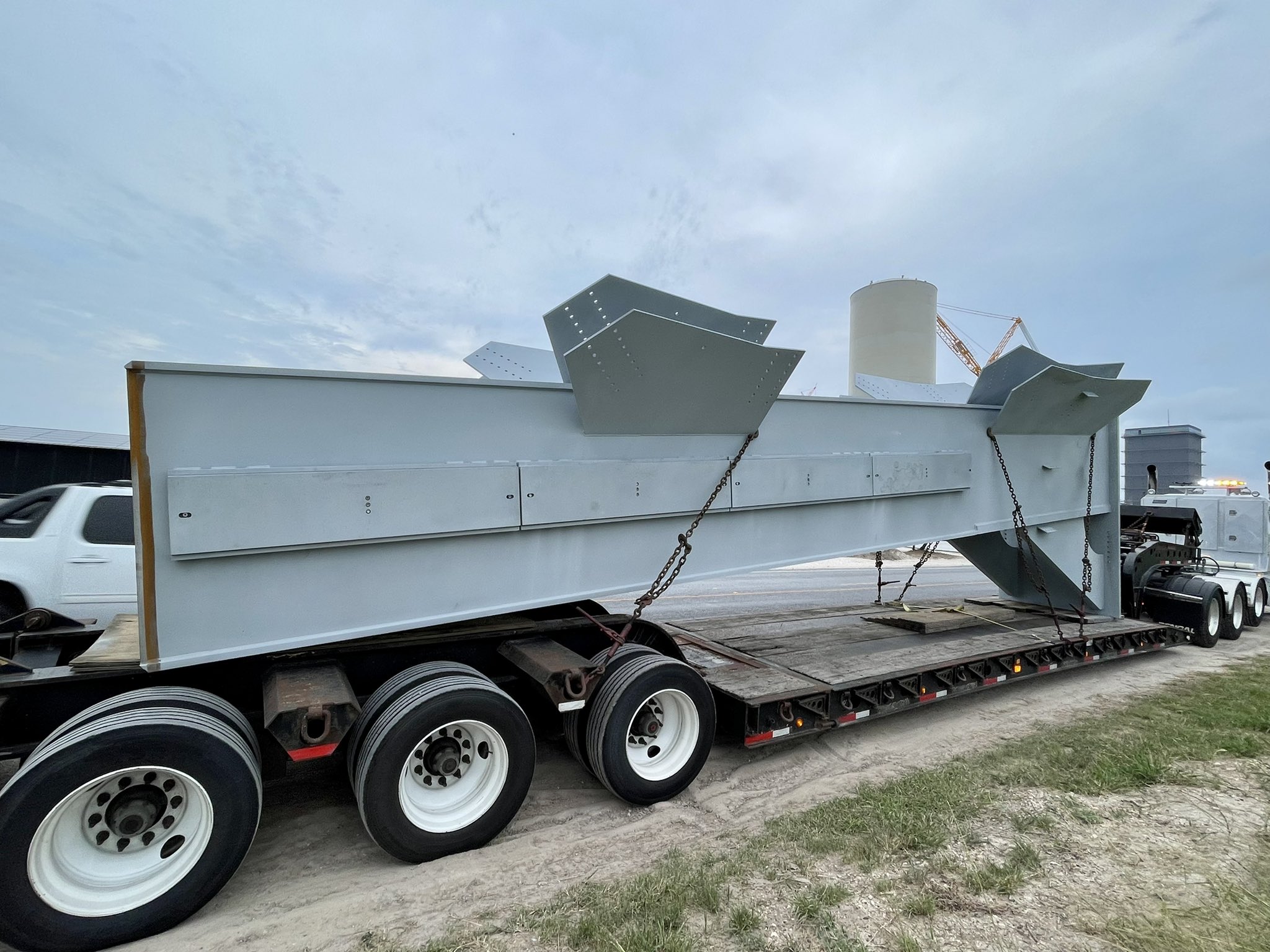 У нее необычная форма, видимо из-за этого задержалась доставка. Эта колонна будет смотреть на стартовый стол.
