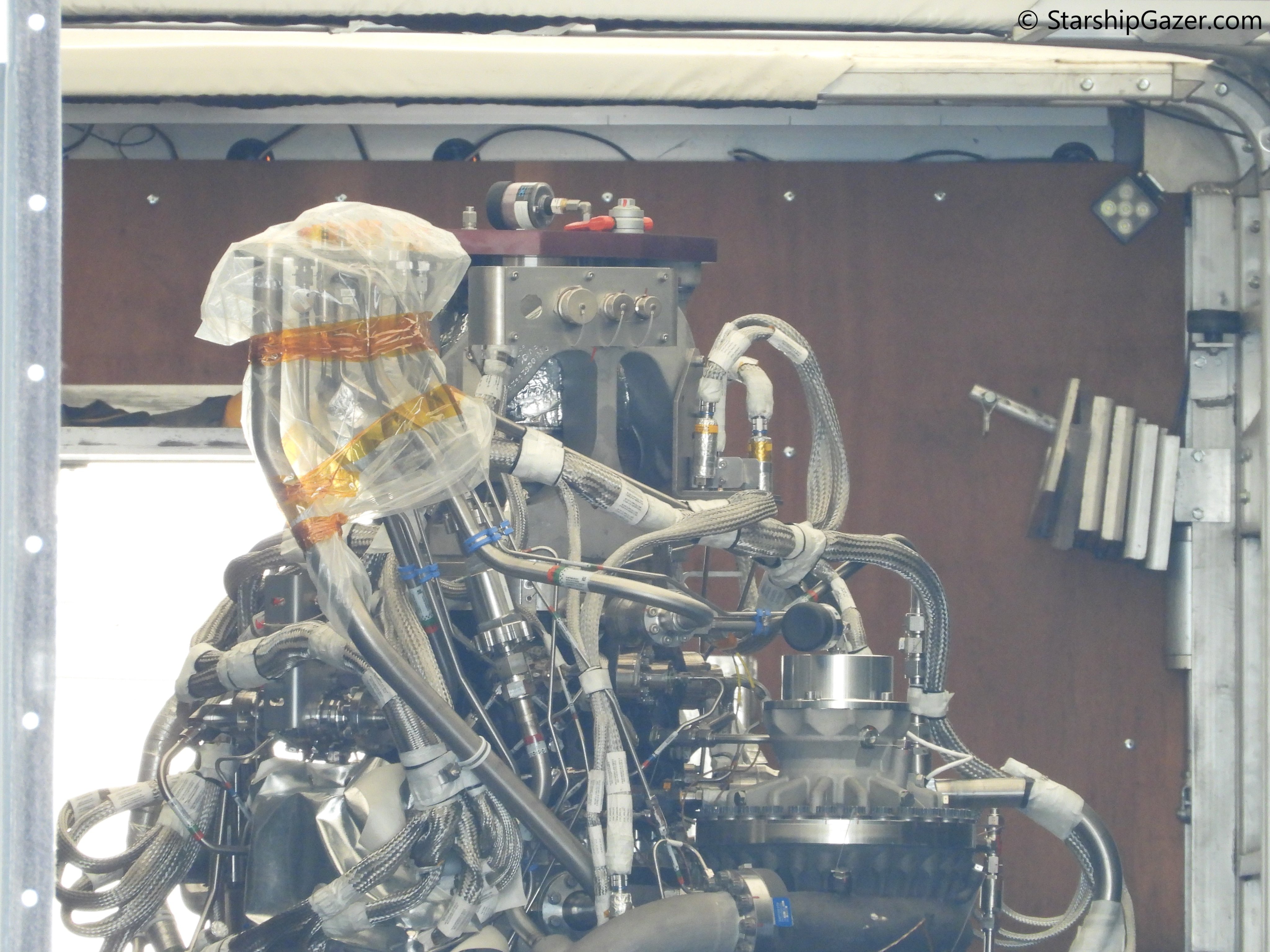 Еще несколько снимков RB5 со вчерашнего дня. RB5 означает (R) ракетный двигатель aptor для Super Heavy (B) ooster и является (5) -м произведенным двигателем RB. Специальные двигатели RB не имеют подвеса по сравнению с центральными двигателями Raptor, которые работают на подвесе.