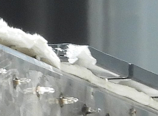 До сих пор я думал, что под плиткой два слоя "одеял" - серый и белый. Но теперь стало очевидно, что там только один слой - белый. А то, что мне казалось серым слоем - это отражение белого слоя в стальном корпусе. Циферки вверху это отлично проявили.