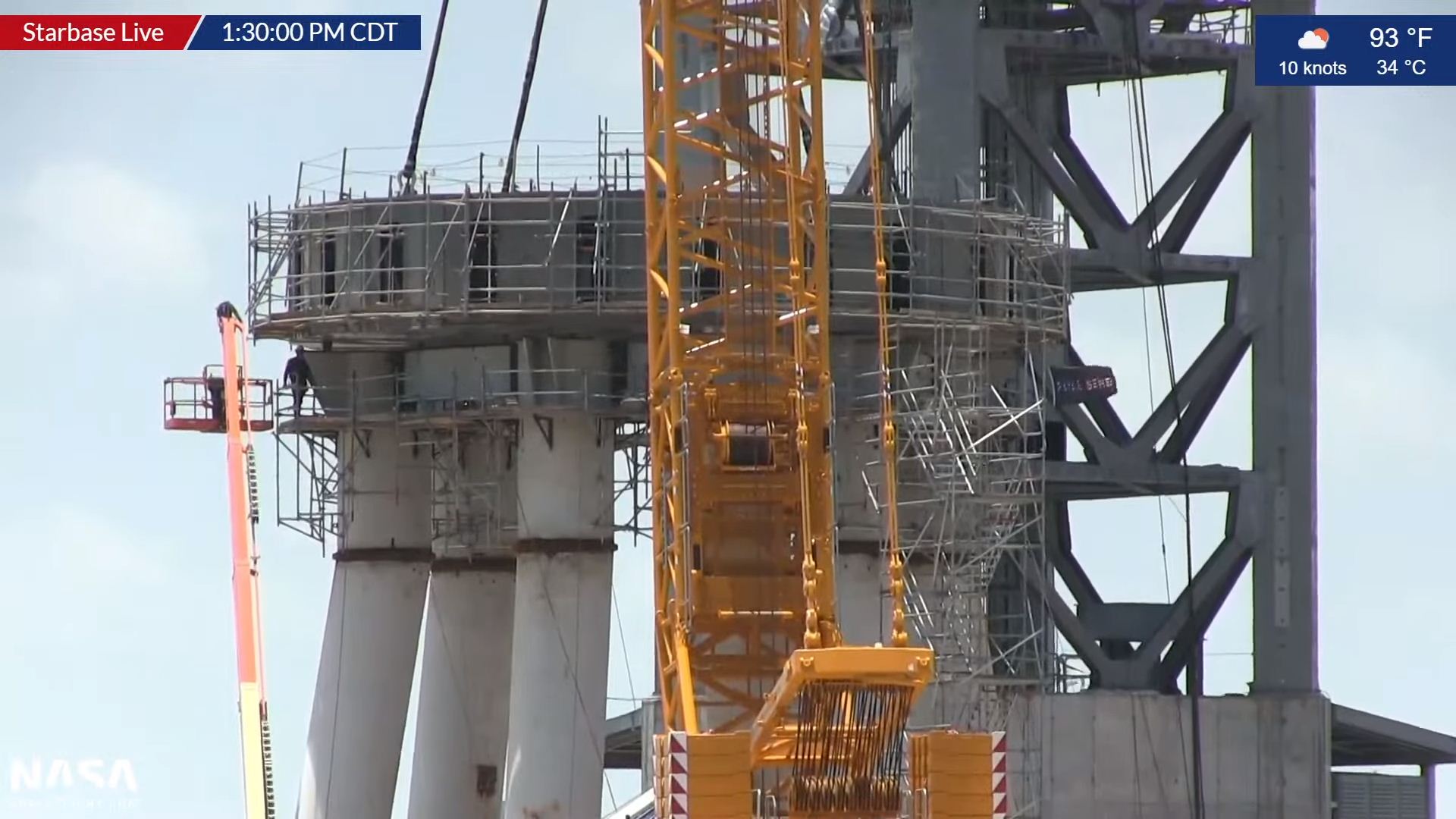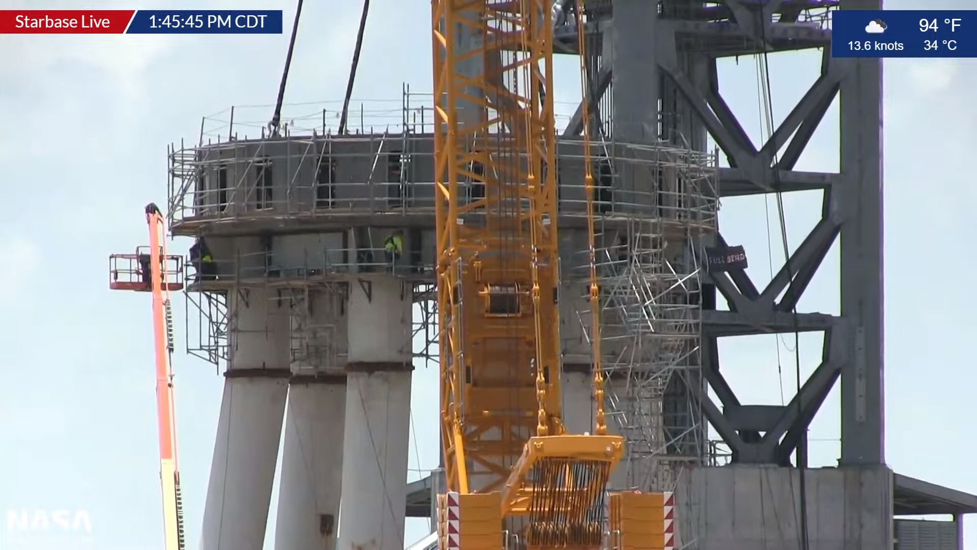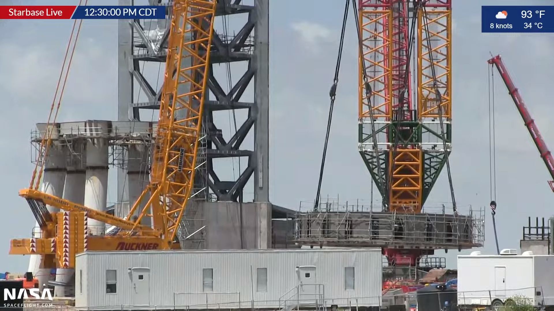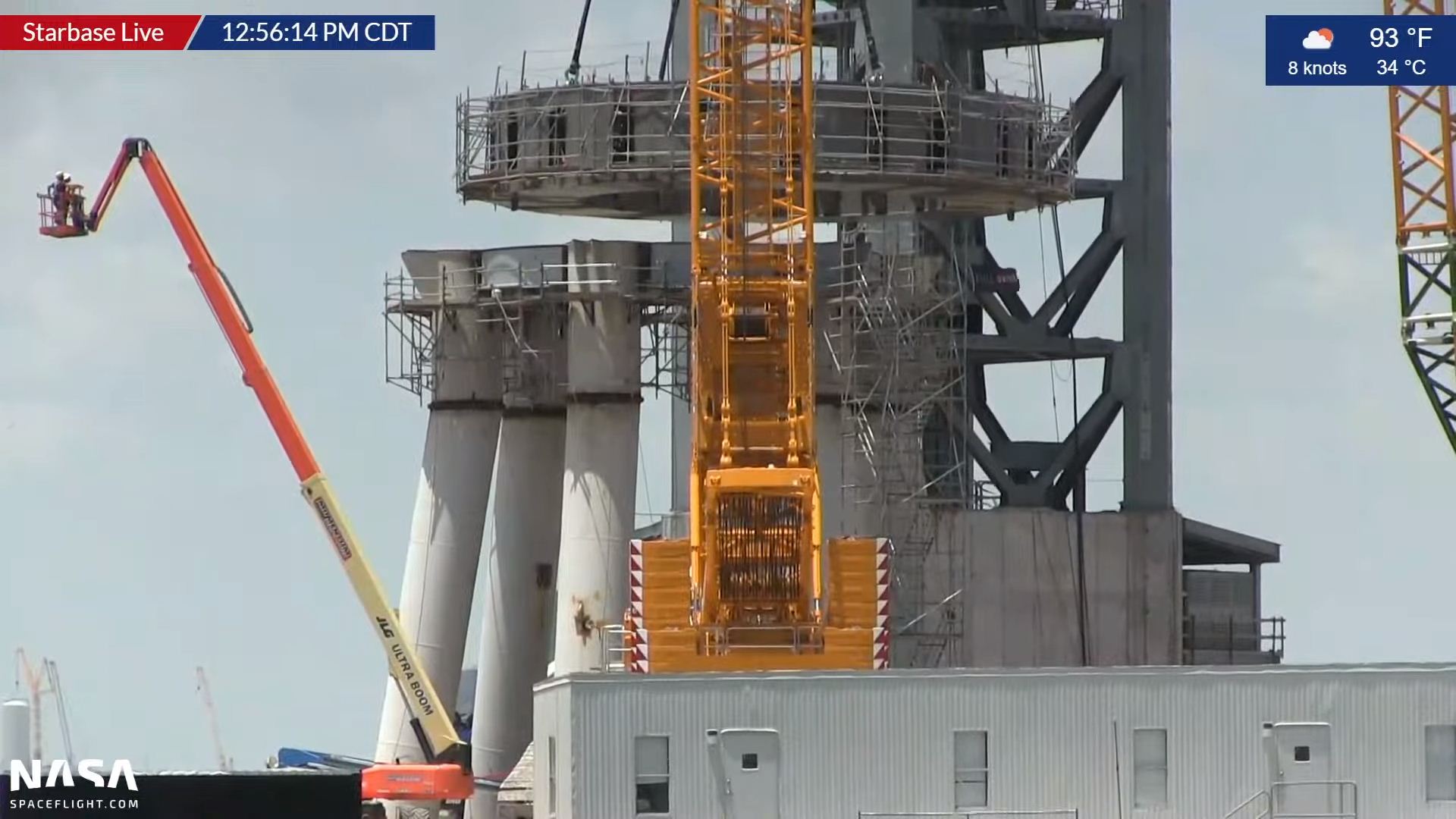 Установлены 3 бака GSE для криогенных жидкостей (из 7), бак для воды, перевезены на СК 2 внешних корпуса для баков GSE. Собран стартовый стол. Собрана башня (пока без рук). Собран обтекатель S20. Собраны 2 части В4 (бак метана и бак кислорода). Также собран бак S20 (не попал в кадр).