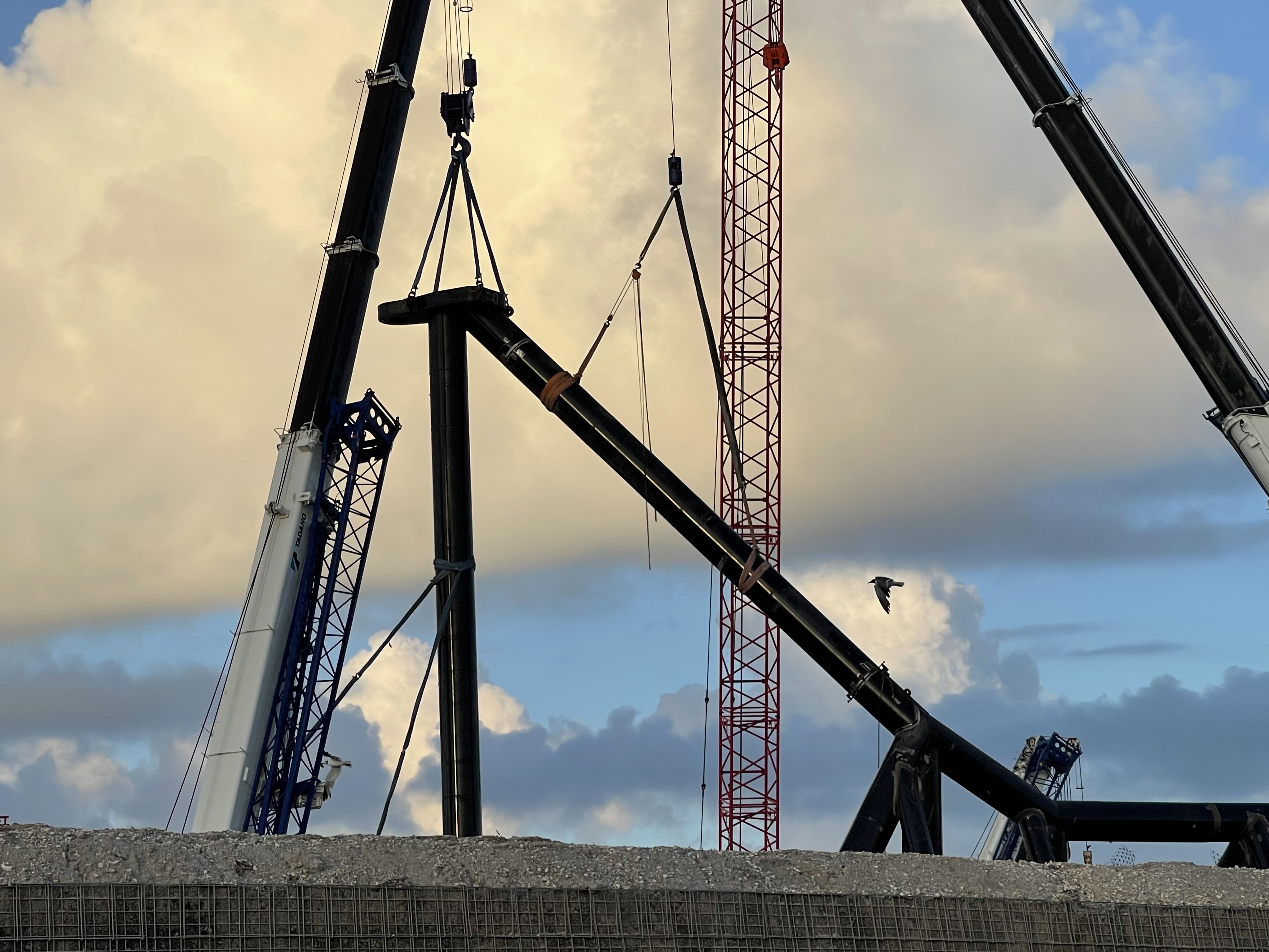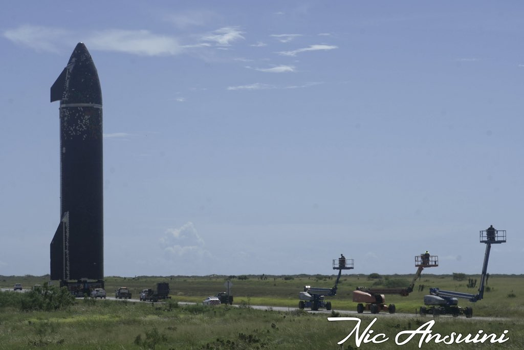 Любопытно, что S20 подвезли не к стенду В, как я предполагал, а ближе к стартовому столу и башне. Может хотят повторить сборку SH+SS, но на этот раз с использованием рук Мехазиллы?