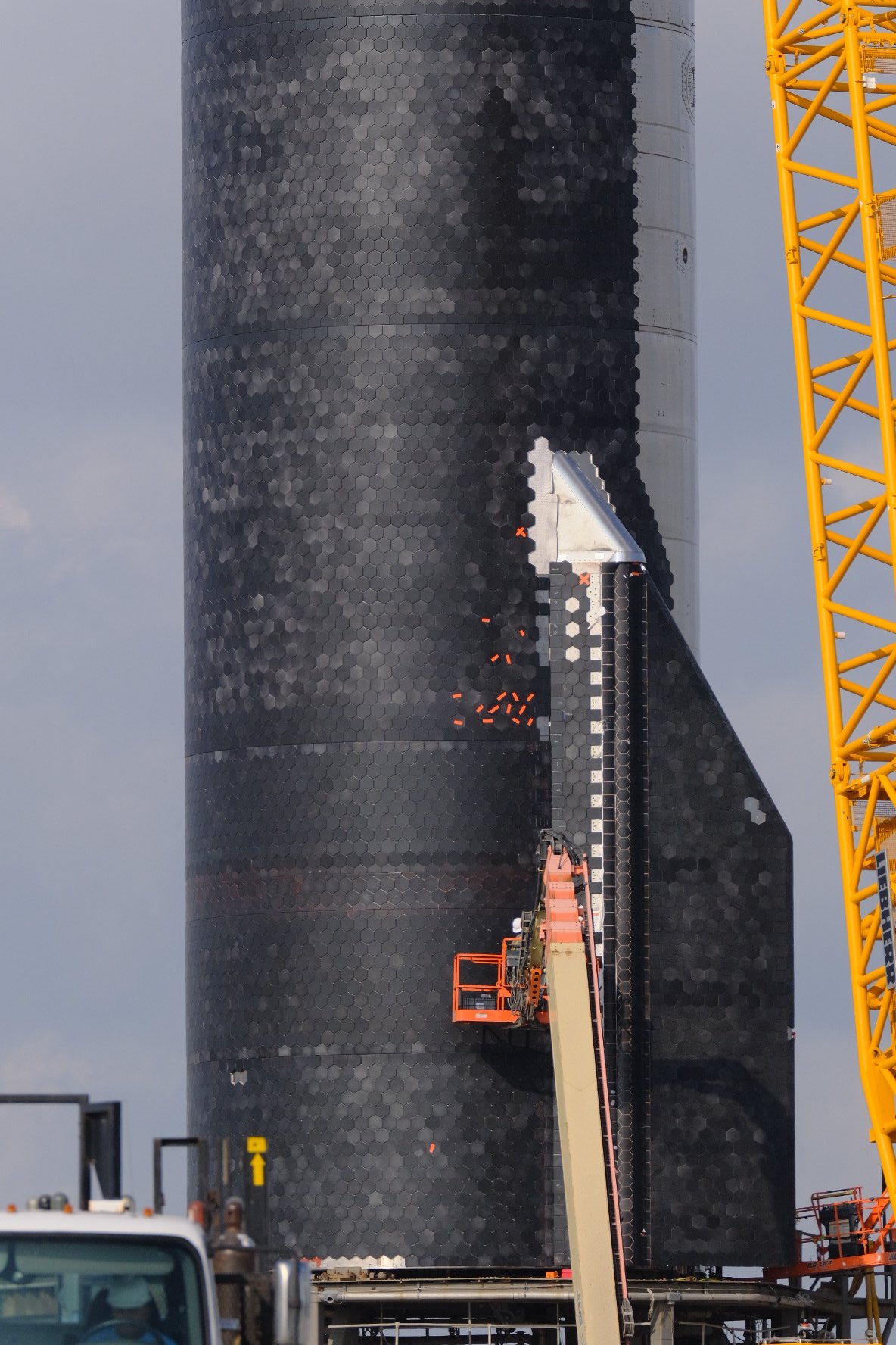 Итак, Илон сказал, что это будет переработано для будущих кораблей, неподвижная область вызывает слишком большое сопротивление, и он также хочет переместить активную поверхность дальше вперед, чтобы было более эффективно вращать корабль, когда это необходимо.
