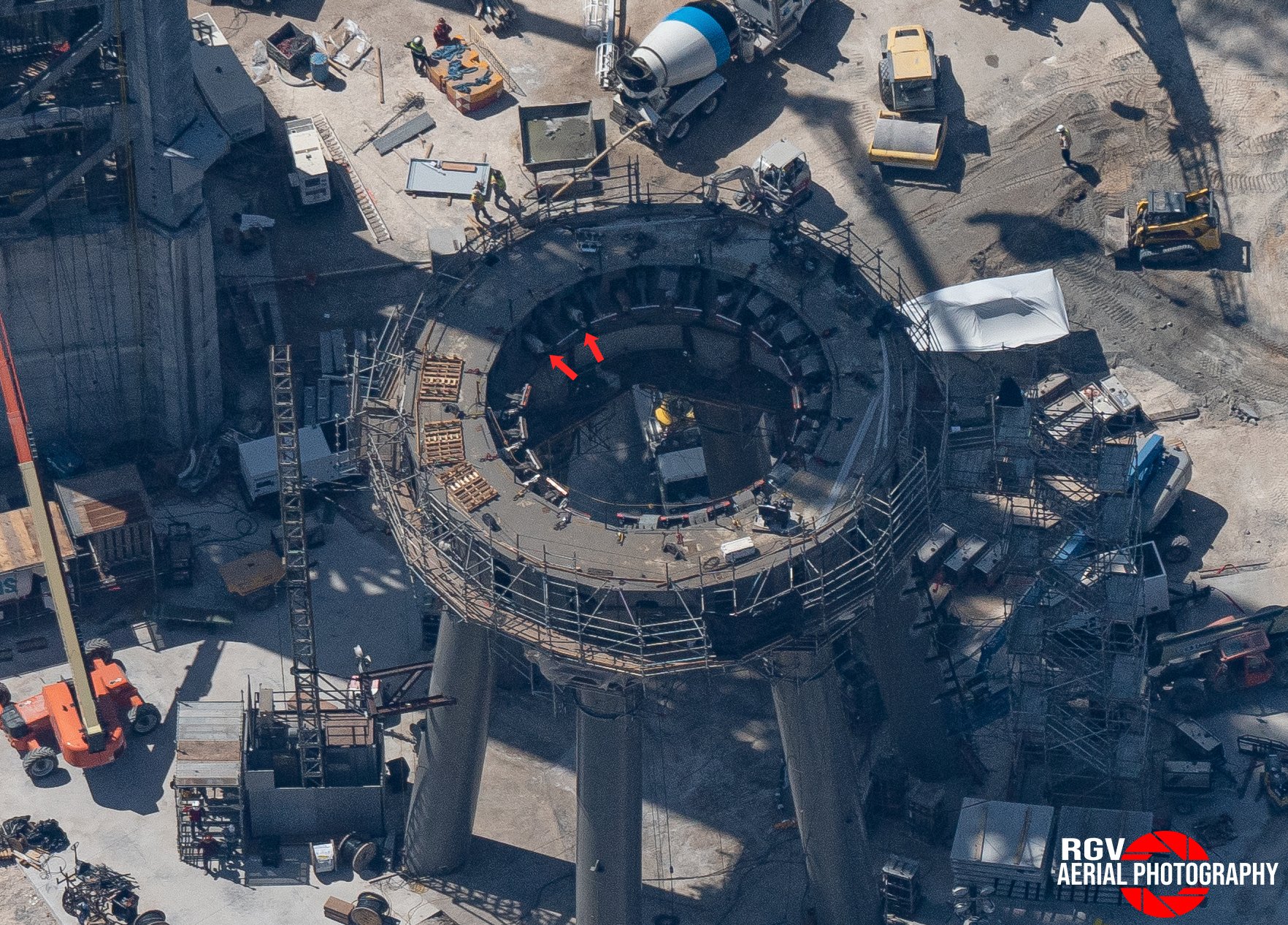 Красными кружками обведены некие порты в верхней части двигателей. А вот здесь красными стрелками отмечены трубы, которые выдвигаются из стартового стола и должны соединяться с этими портами: