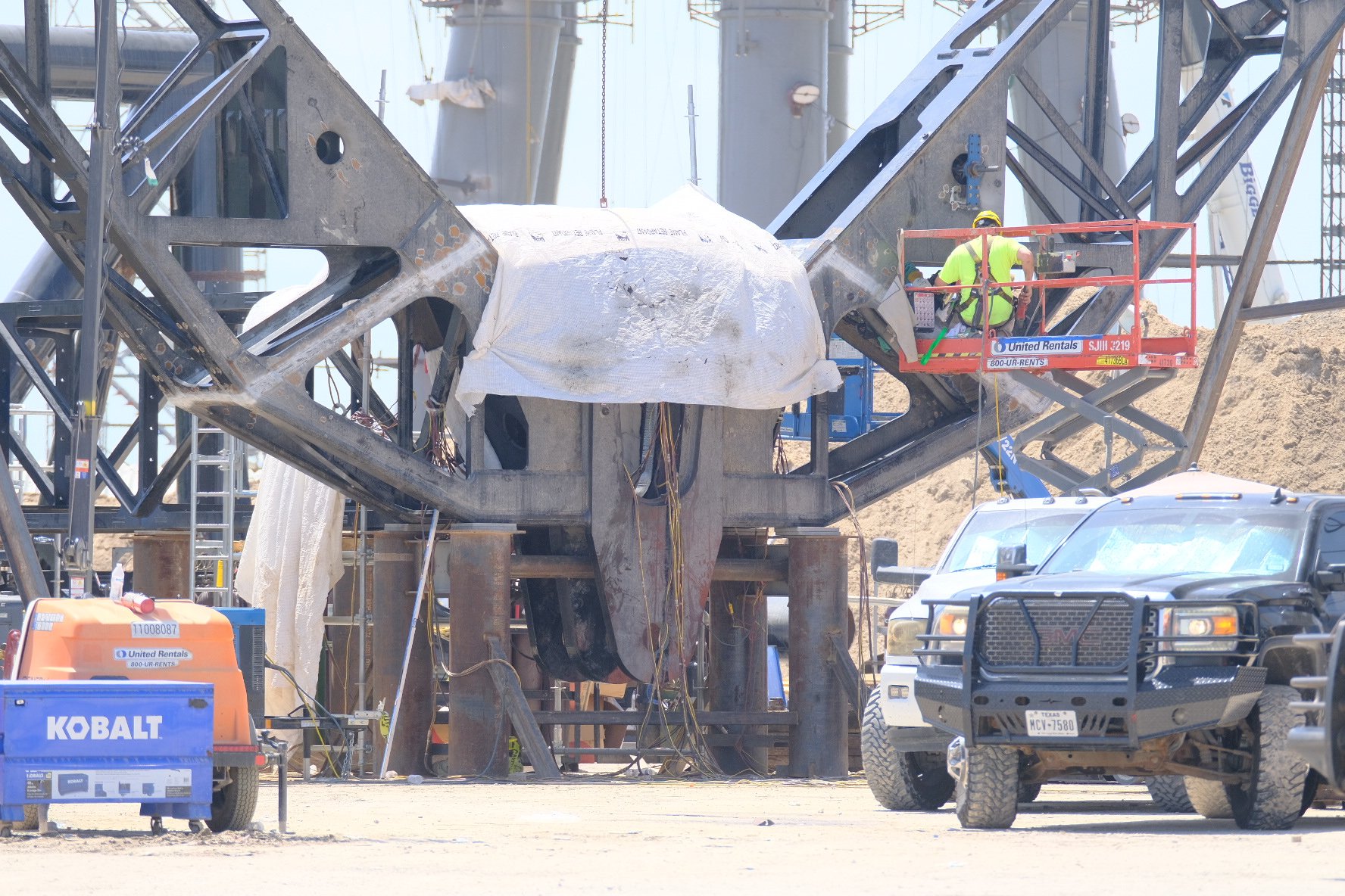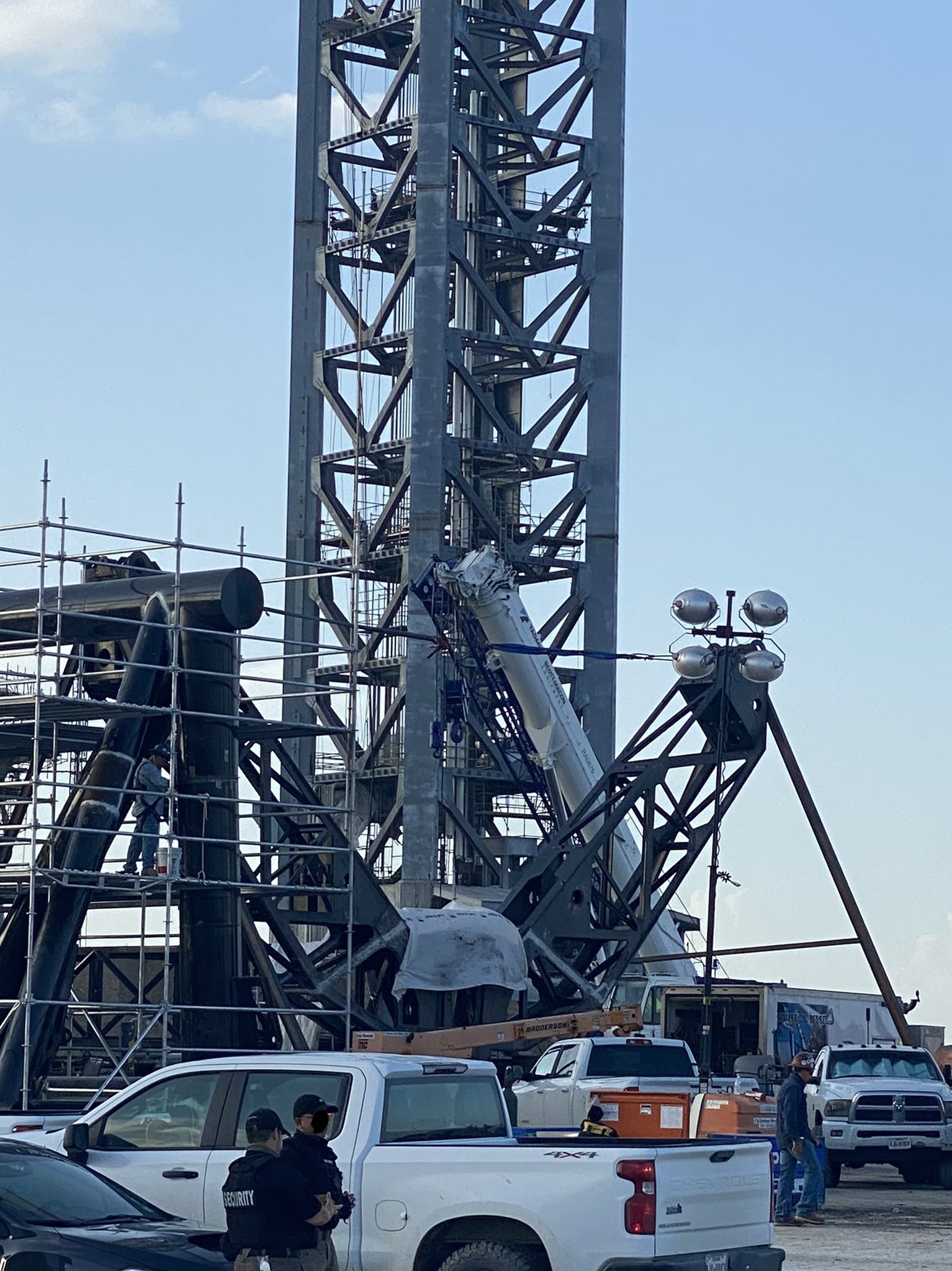 Бригады StarBase продолжают работать над конструкцией рукава QD и захватом на стартовой площадке.